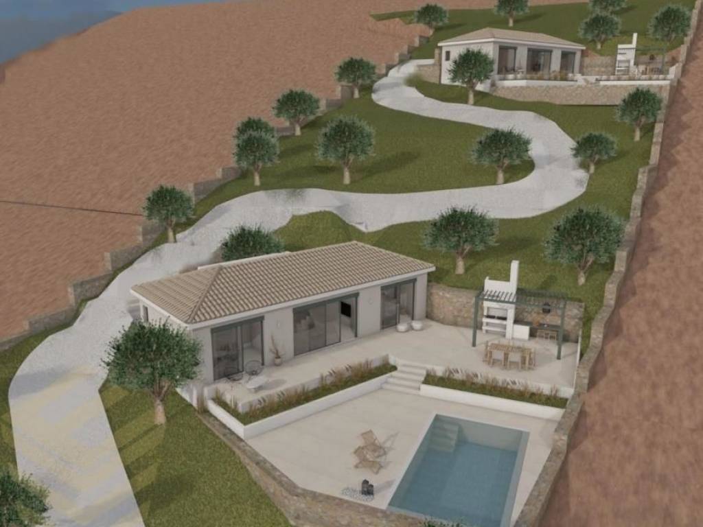 Apollonio, Vasiliki, Agricultural Land For Sale, Out of City plans, 2.430 sq.m., View: Sea view, Features: For development, With building permit, For Investment, Amphitheatrical, Sloping, For tourist use, For Homes development. Plot with Building Permit and Sea View – South Lefkada Location: Evgiros, South Lefkada (Ionian Islands). Plot Area: 2,430 sq m. Building Permits: Two houses (92 sq m. each) with private swimming pools (28 sq m. each). View: Unobstructed panoramic view of the Ionian Sea. Access: Asphalt road right in front of the plot. Infrastructure: Water and electricity available at the boundary of the plot. Distance from the Sea: 470 m. as the crow flies / 4 minutes by car. Environment: Neighboring plots characterized as forest – no future construction next door. Drawings: Architectural drawings 3D models available. Ideal for: Private holiday home, Tourist exploitation (Airbnb / villas). Investment exploitation resale.