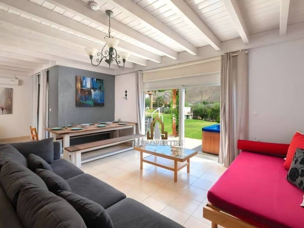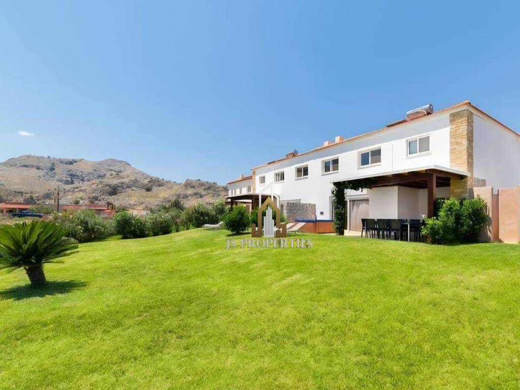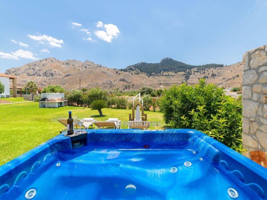 Rhodes, Kolymbia Luxury Furnished Villa with a total area of 120sqm on 2 levels on a 500sqm plot with a large garden, swimming pool, jacuzzi, several parking spaces and an unlimited sea view Consisting of: • Ground floor containing an open space, living room, dining room, kitchen, guest room and wc • First Floor containing 3 spacious bedrooms and a large bathroom Built in 2011, double glazing, aluminum frames, autonomous heating (electricity), air conditioning, solar water heater, storage room, quiet area and 8 minutes walk from the sea Price 340,000€ Property code: 998 For any information contact us
