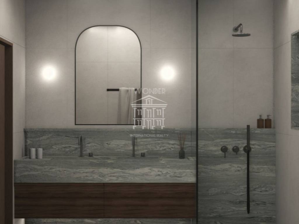 The residence is developed in spacious and bright areas and includes three bedrooms, one of which is a master bedroom, an elegant living room, a modern kitchen, two bathrooms and an additional WC. High-quality materials have been used throughout, with wooden and tiled floors, sliding aluminum window frames and a reinforced security door.