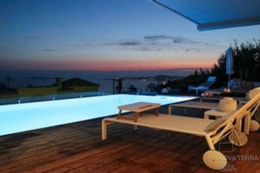 AGIA MARINA, House, 500 sq.m, on a plot of 700 sq.m, year built 2004, 5 rooms, Ground Floor, 1st, 2nd, 3rd, View: Seaview, Unobstracted view, Unobstracted view, Various Characteristics: Balcony, Bath (4), Escalator, Fire Place (2), Furnished, Garden, Playroom, Store Room, Swimming Pool, Toilet, Master Bedrooms: 3 Master Bedrooms, Flooring: Wooden floor, Heating: Air Conditioning, Autonomous Heating, , Boiler, Computer Terminal Ready, Detached, From Side to Side, Luxury, Maid Room (2), Satellite TV, Seaside, Security Alarm, Security Door, Parking area: Garage (6), property ID: 33797, www.nova-terra.gr