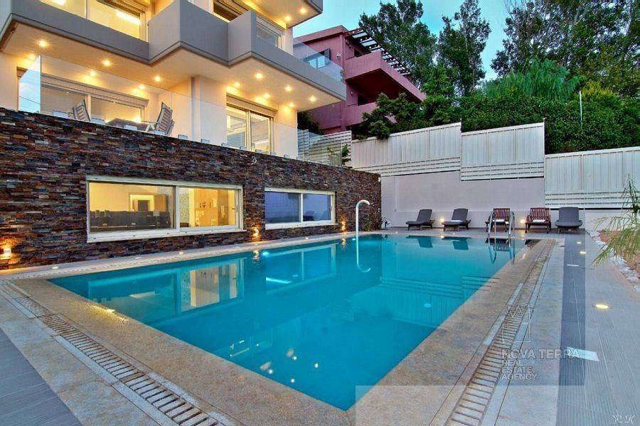 ANAVYSSOS, House, 770 sq.m, year built 2016, 8 rooms, Basement, Ground Floor, 1st, 2nd, 3rd, View: Seaview, Various Characteristics: Balcony, Bath (8), Fire Place, Furnished, Playroom, Store Room, Swimming Pool, Toilet (2), Master Bedrooms: 6 Master Bedrooms, Flooring: Slate, Wooden floor, Heating: Air Conditioning, Autonomous Heating, , Boiler, Detached, From Side to Side, Jacuzzi, Luxury, Maid Room, Minimal, Newly built, Security Alarm, Security Door, Shower, Tents, property ID: 32318, www.nova-terra.gr