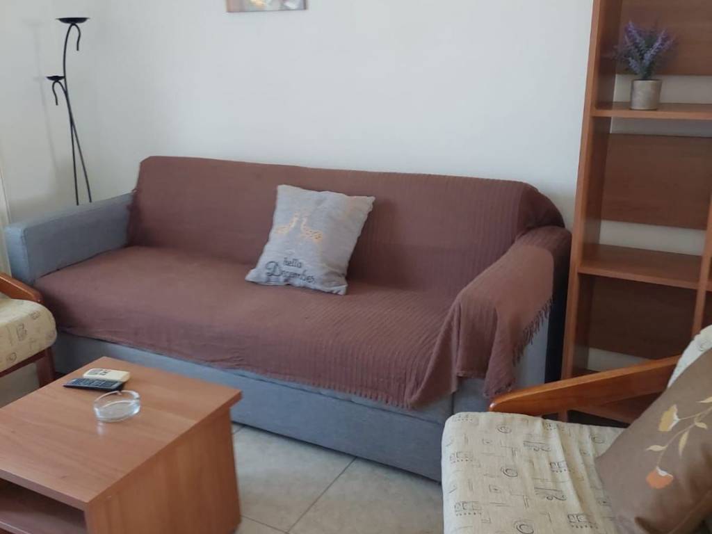 Furnished 2nd floor apartment for rent in a quiet apartment complex. The apartment is 2 rooms with an open kitchen and living room, bedroom. It has 2 balconies facing north, sea, 2 air conditioners, fully furnished and electrically equipped. With its own electricity meter, open parking with a gate that closes and a solar water heater. The price of the common services includes water, common electricity and high-speed Internet. Suitable for short-term rental.