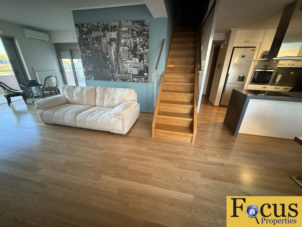 Maisonette For rent, floor: /th, 8th (2 Levels), in Palaio Faliro - Floisvos. The Maisonette is 135 sq.m.. It consists of: 3 bedrooms (1 Master), 2 bathrooms, 1 kitchens, 1 living rooms and it also has 1 parkings (1 Underground). Its heating is Autonomous, Air conditioning are also available, it has Alluminum frames with Double glazed windows, the energy certificate is: B+ and its floors are Wooden. The property's status is: Excellent condition, it is close to Tram, Transportation, Park, Sea, Seaside, School, Square, Church, Kindergarten, Super Market, Cafe/Restaurants, Local market, it has Sea, Mountain, Openness, Good view and it has NorthWest orientation. Excellent modern furnishings. Open plan kitchen. Large terrace on the 6th floor with views of the sea,, With Facade, Bright, Airy, Sunny, Luxury, Modern and it also has the following unique features and advantages: Window Screens, Elevator, Internal staircase, Security door, Quiet neighborhood, Porch.For long-term rental. In case of a single person, the rent is €1.800 Price: €2500. Focus Properties Real Estate, contact phone: +30694726550 +302109888132 , email: info@focusproperties.gr, website: www.focusproperties.gr