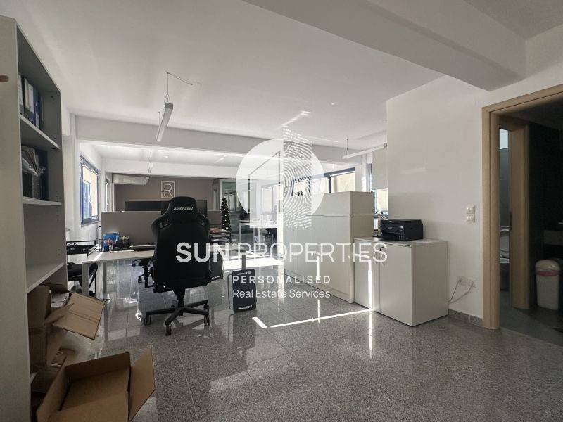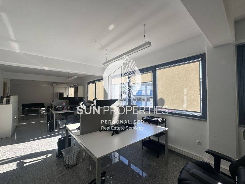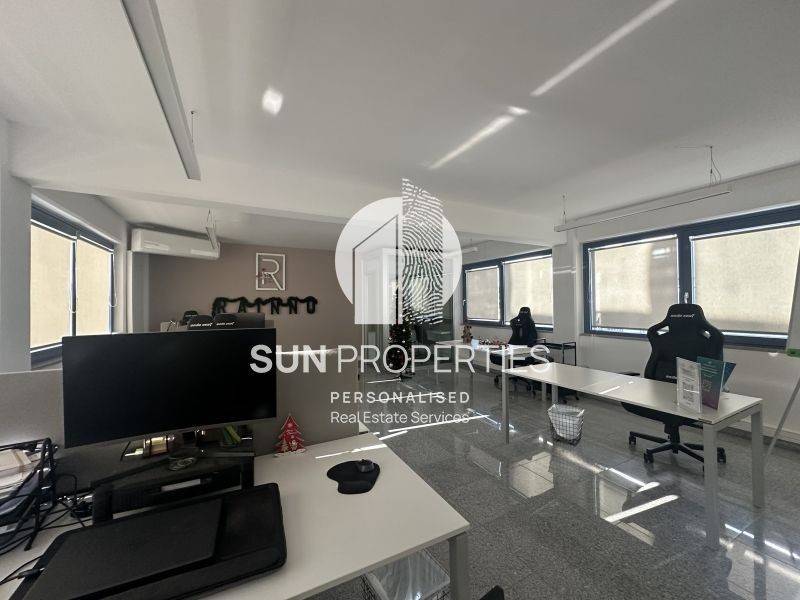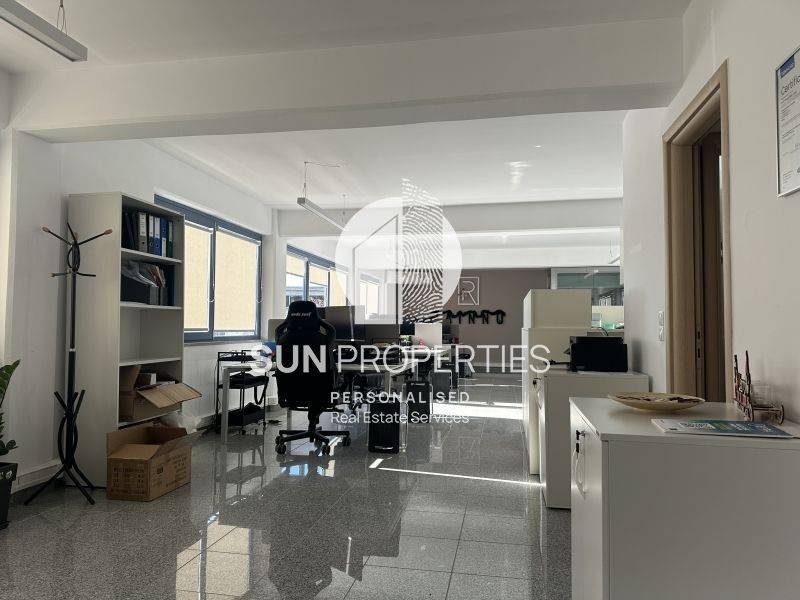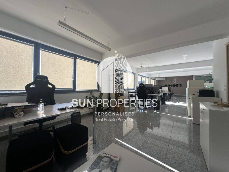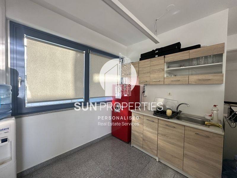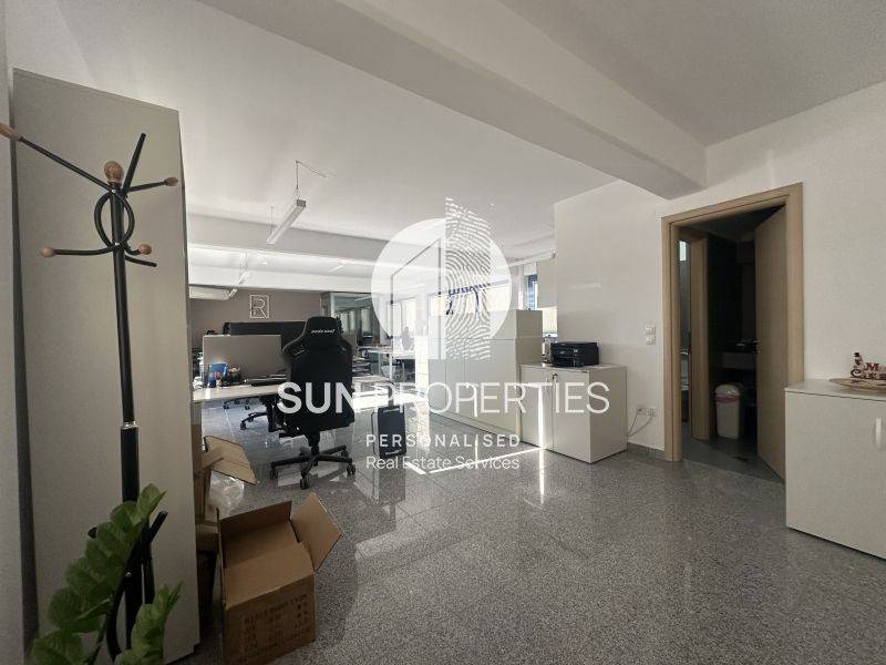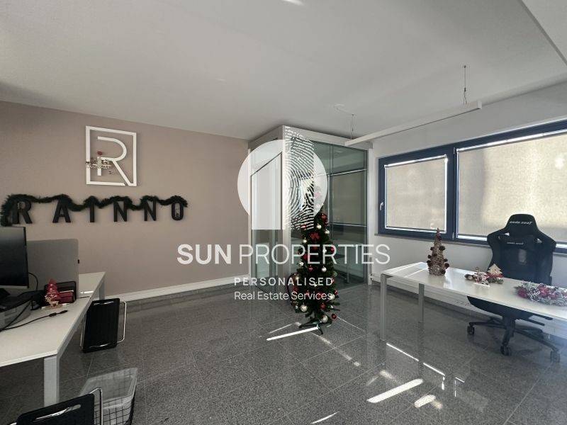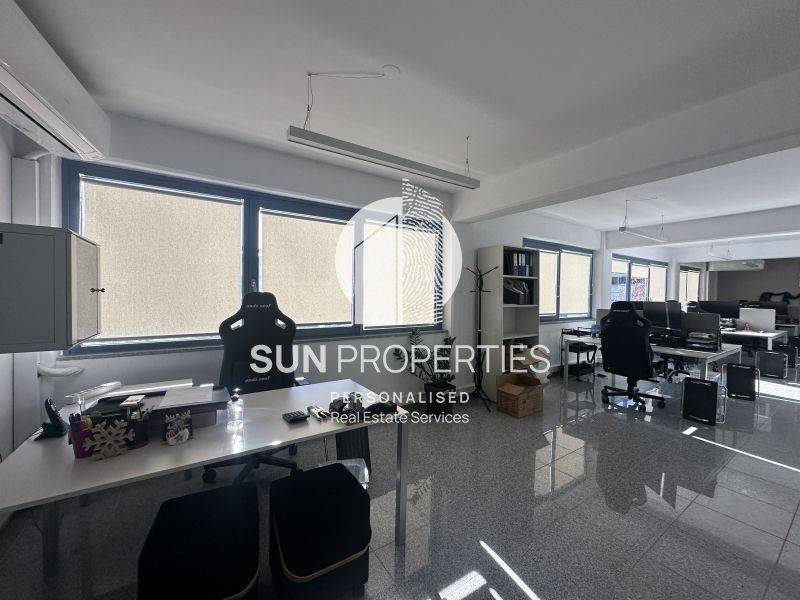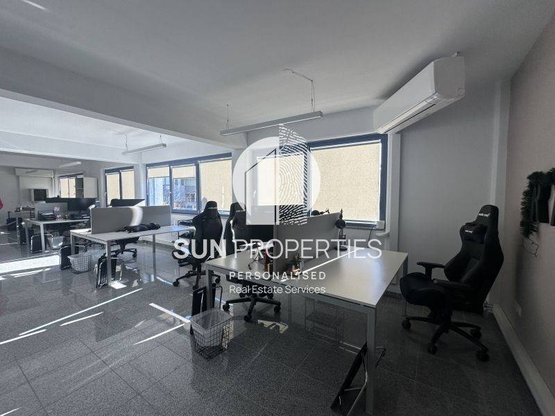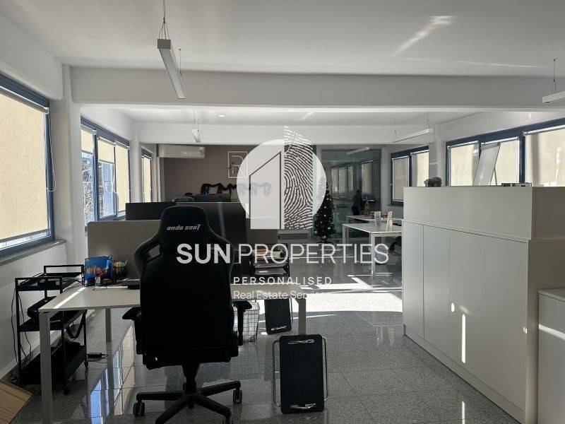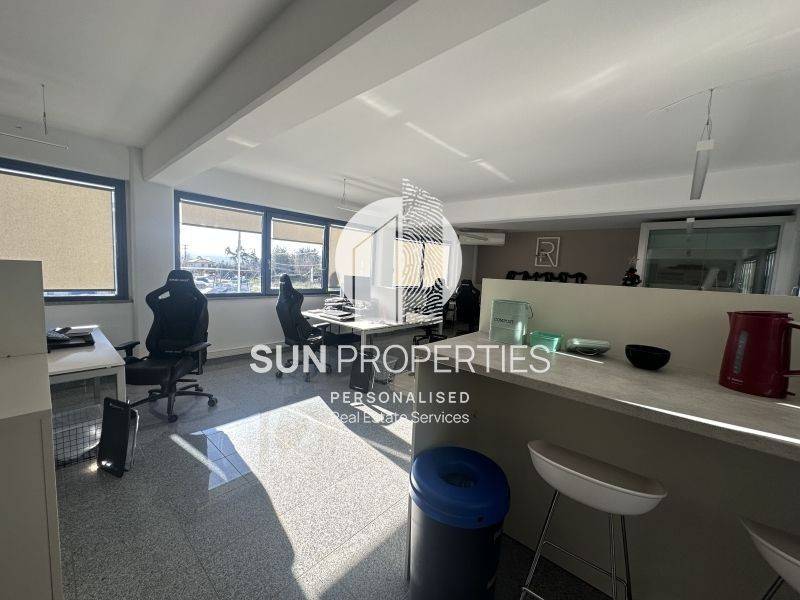 For rent, office space of 115 square meters on the 1st floor of a business building. The offices are located in Thermi, very close to two bus stops, less than a ten-minute walk from the village center. They were built in 2010 and feature bright, open spaces, granite tile floors, and structured cabling. It has two toilets, a kitchen, and one open parking space in the courtyard. Real estate profesional Kiki Tsampazi. Contact phone number +306982551661