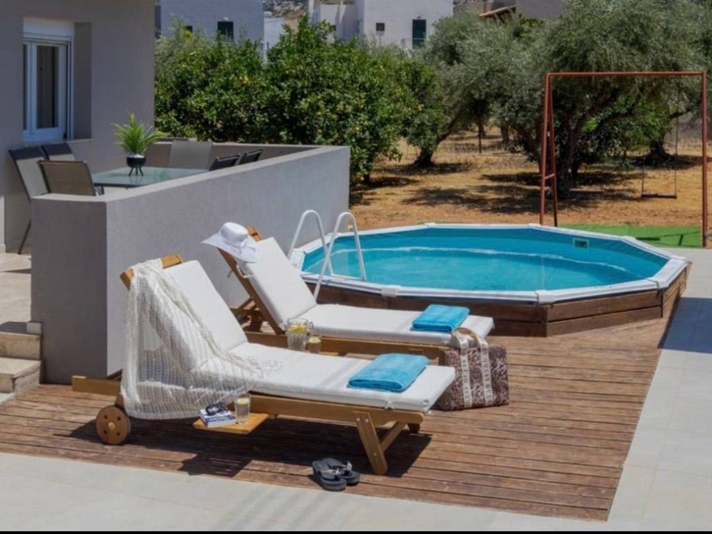 Ενοικιαζεται εξαιρετικη βιλα 100τ.μ εσωτερικης επιφανειας σε οικοπεδο 1000τ.μ. Διαθετει τρια υπνοδωματια τα δυο με μεγαλες εντοιχισμενες ντουλαπες και διπλα κρεβατια,και ενα υπνοδωματιο με δυο μονα κρεβατια.Επιπλεον εχει ενα μπανιο,δικο της ρολοι ΔΕΗ,ηλιακο θερμοσιφωνα,πληρως επιπλωμενη και ηλεκτρικα εξοπλισμενη,αυτονομη θερμανση,κλιματισμο σε ολους τους χωρους,κουφώματα αλουμινίου με ηλεκτρικά ρολά,ηλεκτρική τέντα,ενεργειακής κλάσης Α+. Εξωτερικα διαθετει ιδιωτικη πισινα,κλείστο parking μιας θεσης,μεγαλο κηπο,θερμοπροσοψη,καθως και roof garden με θεα ολη την Χερσονησο. Διαθέσιμο απο τέλη Σεπτεμβρίου. Δίνεται για μακροχρόνια και για βραχυχρόνια ενοικιαση.Η τιμή είναι συζητήσιμη. Μεσιτικό Πελαγία Δασκαλάκη. Πληροφορίες 6946603976. For Rent: Exceptional Villa – 100 sq.m. on 1,000 sq.m. Plot. An outstanding villa of 100 sq.m. internal space is available for rent on a 1,000 sq.m. plot.It features three bedrooms: two with large built-in wardrobes and double beds, and one with two single beds. The villa also includes: •One bathroom •Independent electricity meter •Solar water heater •Fully furnished and fully equipped with electrical appliances •Autonomous heating •Air conditioning in all rooms •Aluminum window frames with electric shutters •Electric awning •Energy efficiency class A+ Outdoor features: •Private swimming pool •Covered parking space (1 car) •Spacious garden •Thermal insulation •Rooftop garden with panoramic views over Hersonissos Available by the end of September. Offered for both long-term and short-term rental.Price is negotiable. Real Estate Agency: Pelagia Daskalaki Contact: +30 694 660 3976 Location on the map is indicative.