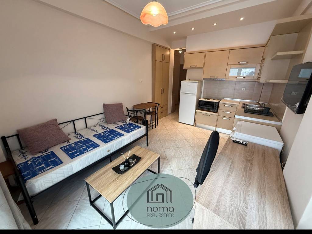 Ενοικιάζεται από το μεσιτικό γραφείο Noma φωτεινή πλήρως επιπλωμένη γκαρσονιέρα 25τ.μ ημιορόφου κοντά στο κέντρο του Βόλου. Αποτελείται από χωλ , ενιαίο χώρο - κουζίνα , μπάνιο και μπαλκόνι σε ακάλυπτο. Διαθέτει κλιματιστικό καινούριο inverter για θέρμανση/ψύξη και κουφώματα αλουμινίου νέου τύπου με διπλά τζάμια. Διατίθεται από έπιπλα με : κρεβάτι με στρώμα , τραπέζι με καρέκλες , γραφείο με καρέκλα , παπουτσοθήκη και τραπεζάκι σαλονιού. Από ηλεκτρικές συσκευές έχει : ψυγείο , φουρνάκι , πλυντήριο ρούχων και τηλεόραση. Βρίσκεται στη περιοχή Άγιος Κωσταντίνος , κοντά στην αγορά , σε μαρκετ και στις σχολές. Σχετικά με τις σχολές απέχει : 4-5 λεπτά με τα πόδια από τις παραλιακές πανεπιστημιακές σχολές , 14 λεπτά με τα πόδια από το οικονομικό πανεπιστήμιο , 14 λεπτά από το ιεκ Δέλτα και κοντά στις στάσεις λεωφορείου : 1 , 5 , 11.
