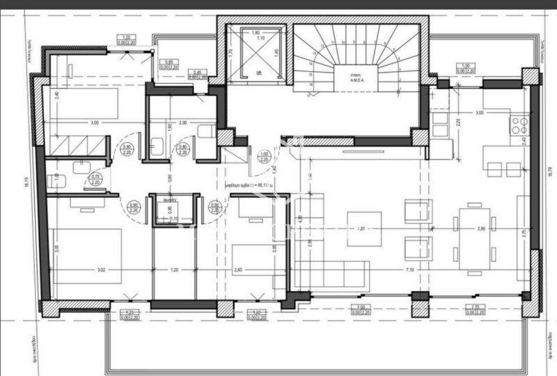 Excellent apartment, sixth floor, modern and luxurious construction, total area 125 sq m gross and 95 sq m net, in the area of ​​Kalamaria. The property, which is under construction, is of energy class A+, is located close to a bus stop, bakery, local market, as well as a super market and schools, while its distance from the metro stop is only 300 meters. It is bright, airy and sunny. Its layout consists of a spacious open-plan living room and kitchen, three bedrooms, a master bathroom, which will have a modern design shower and a wc, for the needs of visitors. The floors are planned to be covered with high-quality granite tiles, the external frames will be sliding aluminum, heavy-duty, double glazed, equipped with mosquito nets and the entrance door will be security armored one. The heating of the property will be achieved by using a heat pump. The complete installation of fire detection and video intercom is planned, as well as the pre-installation of an alarm and air conditioning. An exclusive parking space in the building's pilot house, as well as a storage room in the basement will belong to the apartment. Finally, an independent supply for charging an electric car will be installed on the ground floor. The completion of the property is expected in end-2027.