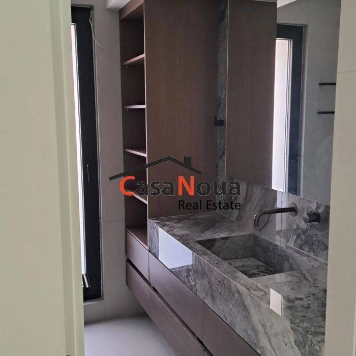 Πωλείται νεόδμητη διώροφη κατοικία πρόσοψης συνολικής επιφάνειας 165 τ.μ., σε ισόγειο και πρώτο όροφο, σε σύγχρονο κτίριο τριών κατοικιών και σε ιδιαίτερα ασφαλή περιοχή. Διαθέτει ιδιωτικό κήπο αποκλειστικής χρήσης 84 τ.μ. με πισίνα 3 x 6,5 μ. Τα δύο επίπεδα επικοινωνούν με ανελκυστήρα και εσωτερική σκάλα. Αποτελείται από τρία υπνοδωμάτια, δύο μπάνια και ένα WC.Η κουζίνα είναι εντοιχισένη με ηλεκρικές συσκευές Miele. Συνοδεύεται από δύο άνετες υπόγειες θέσεις στάθμευσης και αποθήκη 16 τ.μ. Η κατοικία είναι κατασκευασμένη με υλικά υψηλών προδιαγραφών και διαθέτει σύστημα θέρμανσης και ψύξης με αντλία θερμότητας, ενδοδαπέδια θέρμανση και fan coil οροφής. Διαθέτει ενεργειακά, θερμοδιακοπτόμενα κουφώματα, θερμοπρόσοψη, καθώς και υποδομές Smart Home και σύγχρονα συστήματα ασφαλείας(κάμερες ,η είσοδος στο κτήριο επιτυγχάνεται με αναγνώριση προσώπων και χρήση κωδικών.)