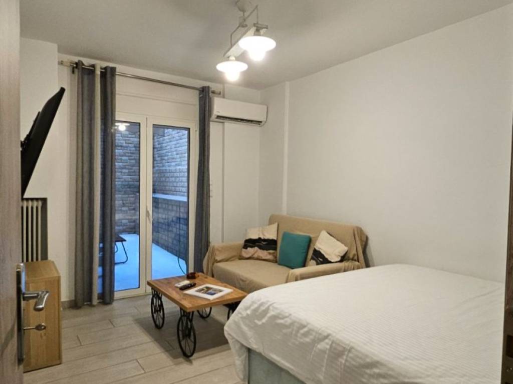 Available for rent a modern and renovated apartment of 31 sq.m. in the Ilisia-Hilton area. Features: Spacious room with a large bed with storage space, comfortable sofa, 55-inch TV, private yard, fully equipped kitchen and bathroom with all amenities, washing machine Central gas heating, air conditioning, solar water heater, security door and aluminum frames Located near metro station, hospitals, supermarkets, grocery stores, restaurants Also available for short-term rental with adjustable rent including bills