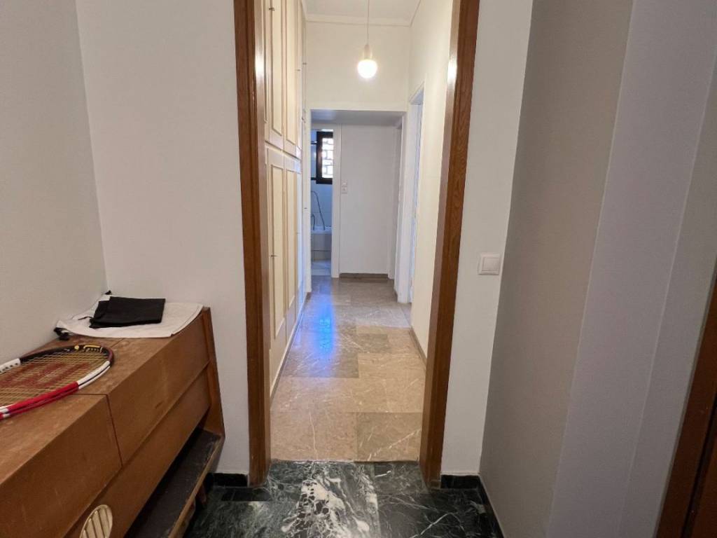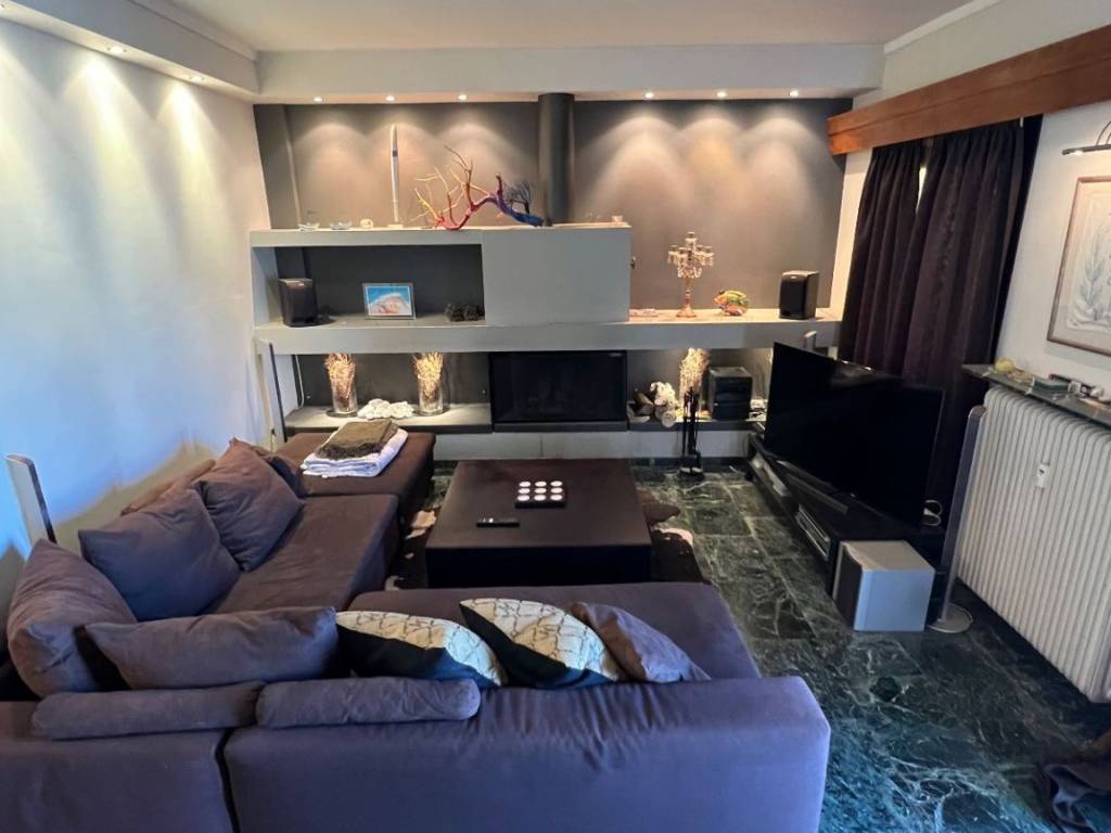 Fully furnished apartment 112m on the second and last floor of the building. It is very centrally located, 100 meters from the historical and commercial center, close to restaurants and coffee shops, of the famous Kifissia suburb. The apartment is located close to Kifissias avenue, close to the bus station and 8-10 min from the metro station. It has a beautiful unobstructed view to a park and Agios Dimitrios church. The apartment has two bedrooms each with an A/C and balconies, large living and dining room with a modern fireplace, one bathroom, one WC, fully equipped kitchen, a study-office area and a big balcony with full garden furniture. It is ideal for company executives or for anyone who seeks to live in Athens for a few months or two students. It is available for short periods of rental as well and the asking price of 1350€ is for a minimum of 6 months lease. 4-5 months 1450€ rent per month 2-3 months 1550€ rent per month 20 days to one month 1700€ rent One week 700€ rent with ultility and power cost included Per day 180€
