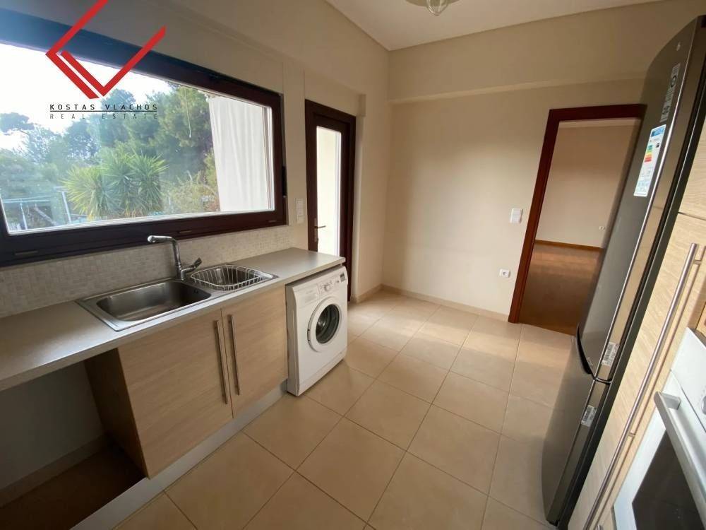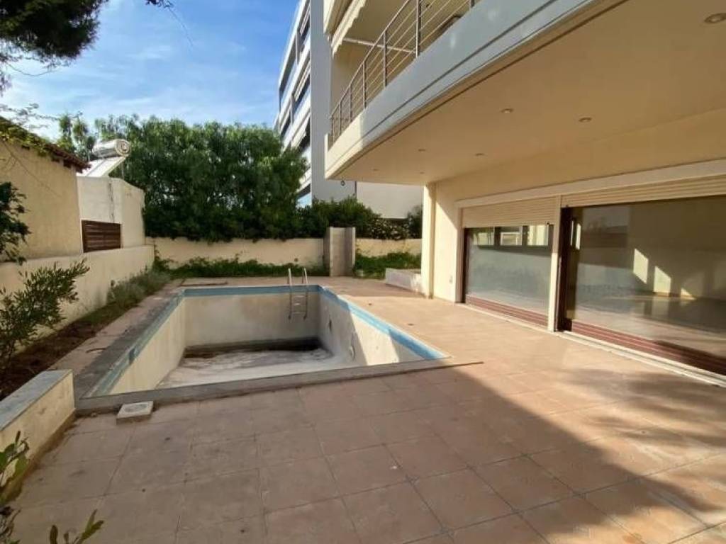 It is located close to the Riviera Tower, Elliniko Park, the sea, and the marina. Additional features include a shared garden and swimming pool, security door, indoor parking space, energy class A, wooden floors, window screens, alarm system, and a solar water heater.