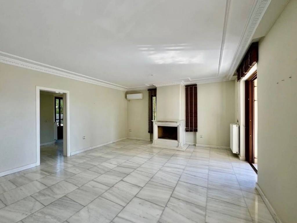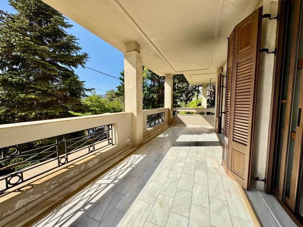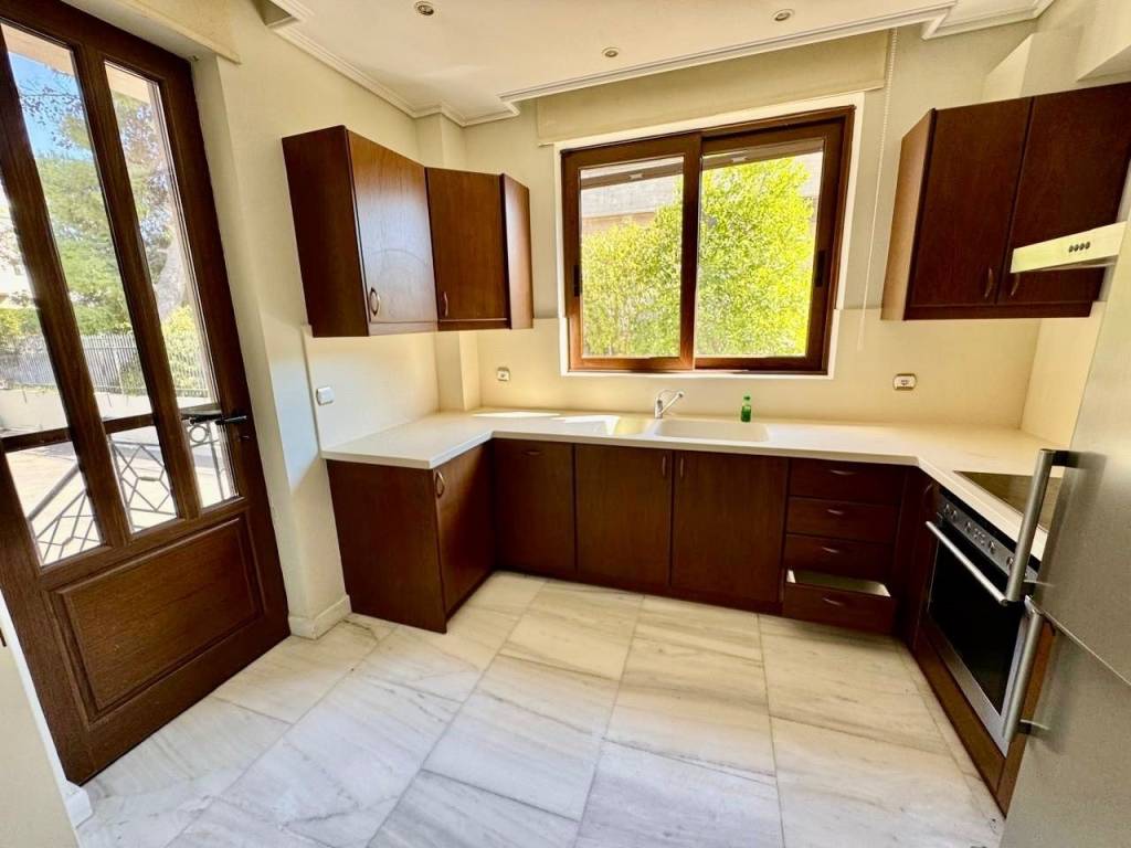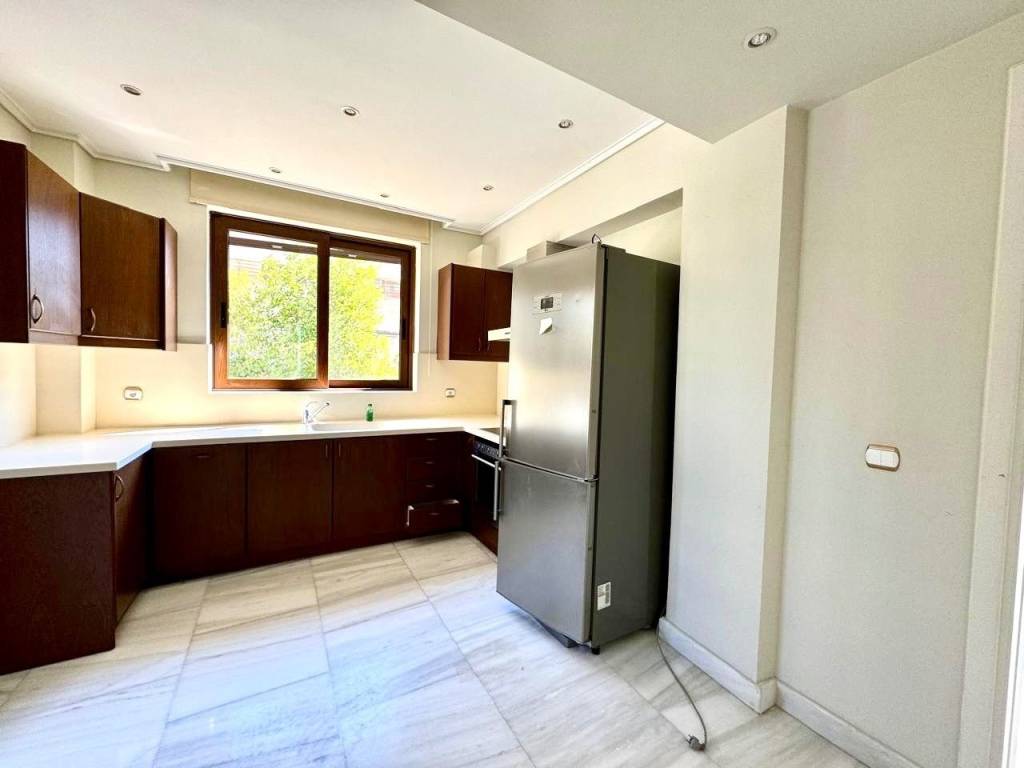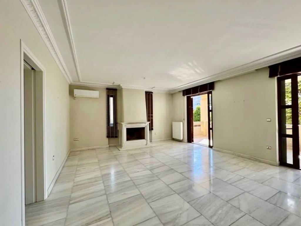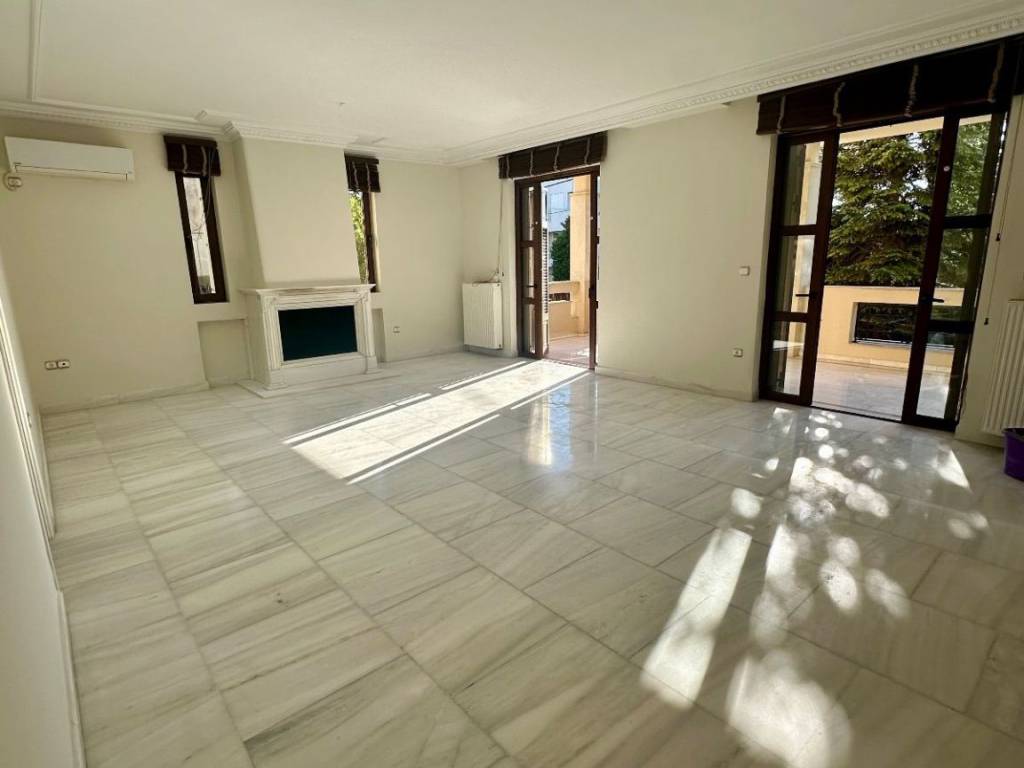 Luxury 200 sq.m. maisonette in the center of Kifisia, just a few steps from the shopping area. It consists of a raised ground floor of 130 sq.m. featuring two bedrooms, two bathrooms, a spacious living room with a fireplace, a separate kitchen, large balconies, and direct access to a large shared courtyard. The semi-basement level of 70 sq.m. includes a large playroom, an additional bedroom, and a bathroom. The property also includes a closed parking space and a storage room, and is equipped with autonomous natural gas heating, security cameras, and an alarm system.