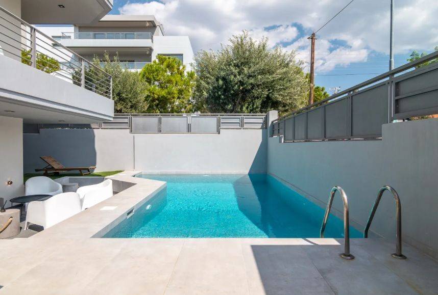 A luxury detached house of 270 sq.m., arranged over three levels (1st, 2nd, and 3rd floors), is available for rent in Lower Glyfada, in an excellent location just a few steps from The Ellinikon Experience Park. The property was built in 2004 and fully renovated in 2024, offering a high standard of comfort and contemporary design. It consists of four bedrooms, three bathrooms, two WCs, two kitchens, and two spacious living rooms, and also features an internal staircase, attic, and playroom. Additionally, it includes two parking spaces in a closed garage. It is equipped with autonomous oil heating, air conditioning, a solar water heater, aluminum window frames with double energy-efficient glazing, as well as wood and tile flooring. The residence is freshly painted, fully furnished, corner, front-facing, dual-aspect, and exceptionally bright, with open views and luxurious, modern features. Additional amenities include a swimming pool, garden, jacuzzi, elevator, electrical appliances, storage room, window screens, security door, alarm system, night electricity tariff, an electric vehicle charger, and large verandas. It is located in a quiet neighborhood, close to public transportation, parks, local markets, and restaurants, making it an ideal choice for those seeking premium living in a prime location. The indicated location is approximate. For more information or to arrange a viewing, please contact us: KOSMOS REAL ESTATE Property Manager: Pantelis – +30 6986870912 padelis@kosmosrealestate.gr www.kosmosrealestate.gr