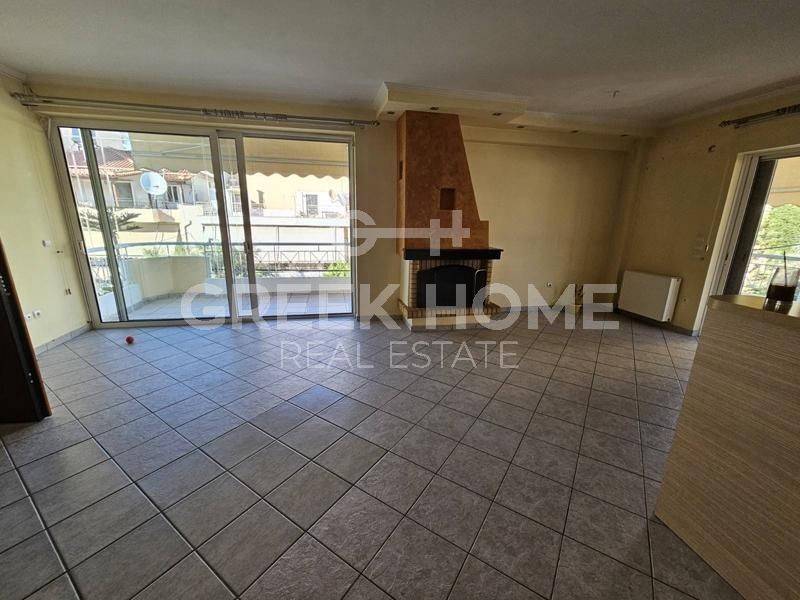 Kallithea (Attica - Southern Suburbs), Agia Eleousa - Floor Apartment 93sqm unfurnished, bedrooms 2, 2nd, excellent condition, year built 2005, energy class B, living room, hall, kitchen, 2 bathrooms, heating type: autonomous (oil), quiet, luminous, corner, frontage, painted, storage space 3sqm, boiler, fireplace, balconies, large balconies, balcony 40sqm, tents, elevator, loft storage, aluminum frames, double glazed windows, door screen, ceramic tiles floors, handicap ramp, three phase electricity, night electricity discount rate, secure door, alarm, video doorbell, luxurious, satellite, eastern orientation, special offer, close to market (up to 100m).