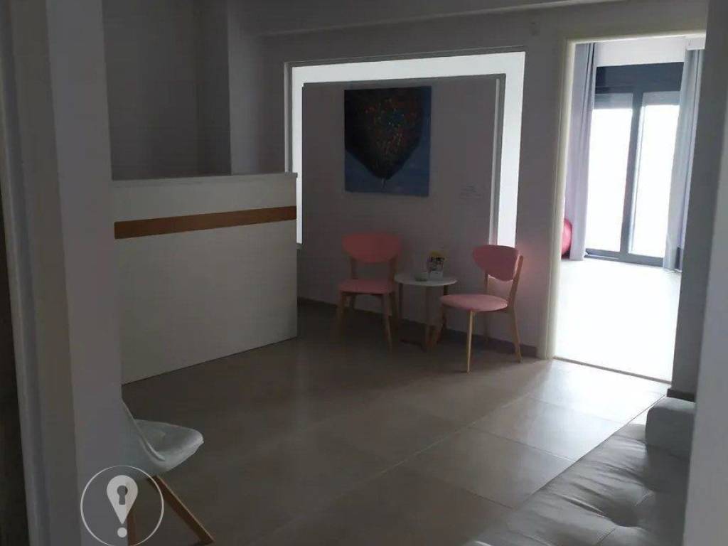 Andrianoupolis for rent penthouse apartment 115 sq.m., 6th floor in a fully professional apartment building of 2016. It consists of 5 rooms, WC, independent storage room, 3 balconies with unlimited sea and mountain views, 2 independent entrances with armored door. It has autonomous natural gas heating, aluminum frames. The space is suitable for use as a doctor's office or office. The space is in excellent condition, is already arranged and can be used without requiring special work. Its previous use was a medical area and the previous owner can provide full equipment consisting of 2 inverter air conditioners, alarm system, hidden sound system installation, compact kitchen with cabinets and appliances. Its location is ideal as it is located 150 m from the KRIKELAS bus stop, 600 m from the KALAMARIA metro stop and 10 km from the MACEDONIA Airport. The address is indicative. Code 23358 Tel +30 6936203214 Spyros Dinos, call us T 2310 334 001.
