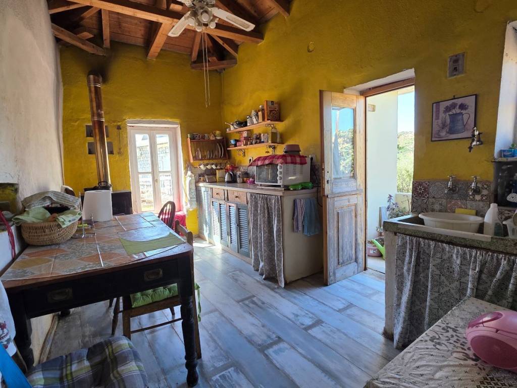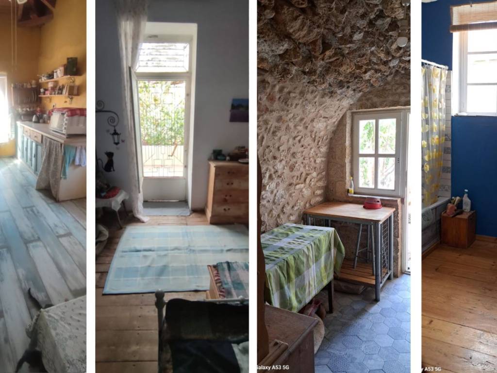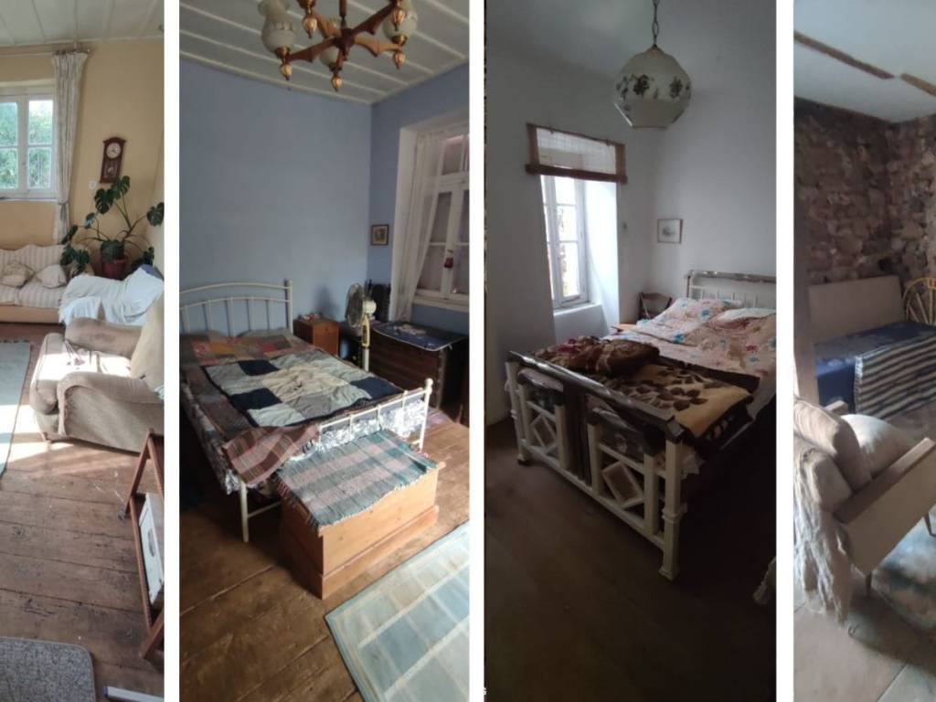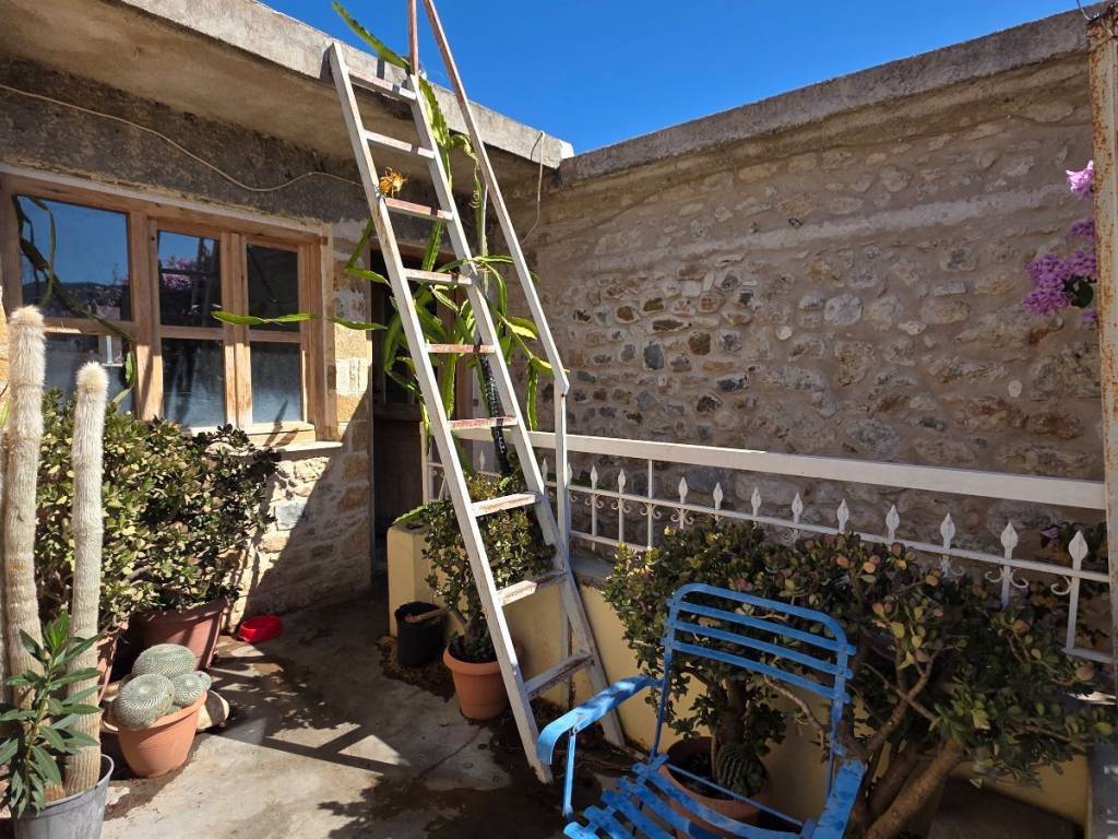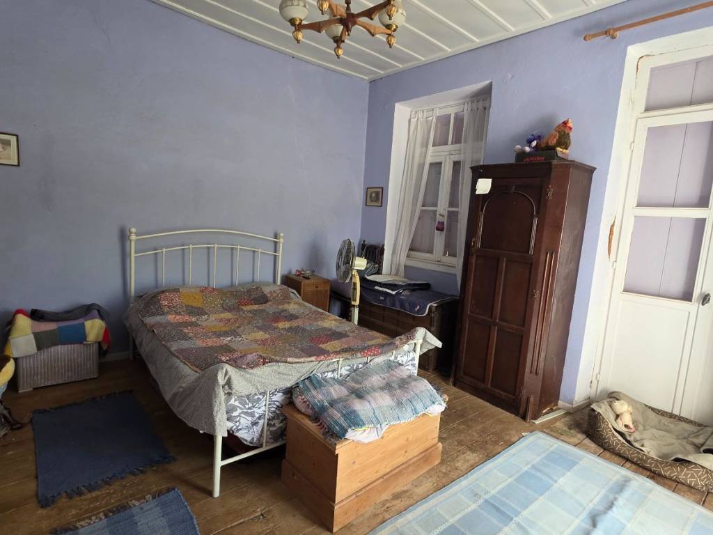 The house is located in a quiet area on the outskirts of Kambos. Cafés, taverns, a butcher, a pharmacy, and a supermarket are within a 10-minute walking distance. The large house sits on a 500 m² plot and offers a total of 302 m² of living space across two levels. The upper floor, measuring 140 m², serves as the main living area and includes a bright and welcoming living room, a fully equipped kitchen, three cozy bedrooms, a family bathroom, and a study with a fireplace. A utility room provides additional convenience, while two verandas and three balconies invite you to enjoy the outdoors. The ground floor, with 160 m², retains its traditional character with four original rooms that were once used as stables. One of these rooms has been converted into a self-contained studio apartment with its own kitchen and shower room – ideal for guests, family members, or as a rental. In addition, there is a large sterna (water cistern), a practical and authentic feature of the property. The outdoor areas offer various charming spots to relax, reflecting the Mediterranean lifestyle. The driveway provides space for two cars. The paved courtyard is equipped with a traditional oven and a vine-covered seating area. The spacious garden behind the house is planted with fruit trees and an old almond tree, creating a peaceful oasis for relaxation or social gatherings. This property combines traditional charm with a large plot and versatile uses – whether as a family home, holiday residence, or as an investment with rental potential.