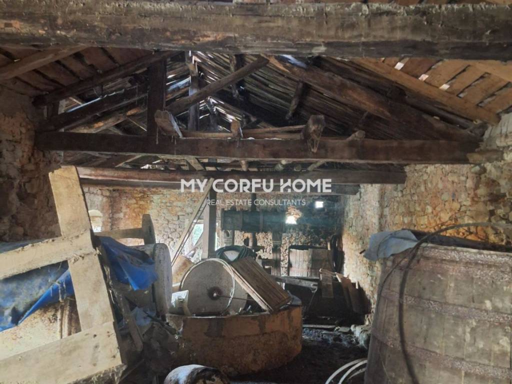 An old stone olive mill with a surface area of 99.86 m² is available for sale, located on a plot of 338.00 m² in Agros, Agios Georgios, Corfu. This is a property of particular architectural interest, which needs complete renovation, with no possibility of additional construction. Its location is excellent, in a central but quiet part of the village, without a frontage on a main road, with unobstructed views of the natural forest and mountain landscape. Direct access to shops, schools, a pharmacy, a café, and a medical center significantly enhances the value and functionality of the property. It is an ideal choice for investment, either as a residence with a unique character or as an alternative accommodation property. As part of our comprehensive services, our office can undertake the complete renovation of the property, while providing advice and support for the conclusion of a loan agreement for purchase and renovation, through cooperating banking institutions.