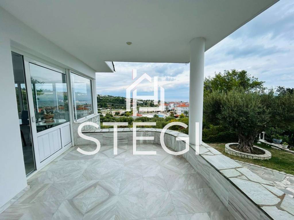 RESIDENCE Location - Chanioti (1000 meters from the sea) Located in the quiet, green surroundings of Chanioti, this well-maintained residential property offers a balanced combination of comfort, quality construction, and an excellent setting. The building has a total area of 380m2 and consists of four independent apartments. Each apartment includes two bedrooms living room-kitchen and one bathroom, with a practical layout and bright, comfortable living spaces. The property is suitable both for private residential use and for tourist or rental purposes. It is set on a 2000m2 plot, surrounded by lush greenery that ensures privacy and a calm atmosphere. The outdoor area features a landscaped garden and a dedicated barbecue area, ideal for relaxation and social gatherings. A key feature of the property is the large wrap-around balconies, offering unobstructed views of the sea and the mountains. The distance to the beach is approximately 1000 meters, providing easy access while maintaining peace and seclusion away from the busy coastline. The building also includes underground parking, an important advantage for the area, adding convenience and value. Overall, this is a solid and attractive property with long-term value, located in one of the most sought-after destinations in Chalkidiki, suitable both as a permanent residence and as an investment opportunity. Square meters – 380m2 Plot area – 2000m2 Flat description: 4 apartments each consist of: Kitchen-living rooms, 2 Bedrooms, 1 bathroom COMFORTS • Cooling - heating air conditioning • Mosquito Nets • Italian doors • Italian Kitchen • Armored door • Double Glazed Synthetic Windows • Fully equipped and furnished • Fireplace SURROUNDINGS • Outdoor lighting • Perimeter fencing • Greenery • Easy Access • Parking space • BBQ