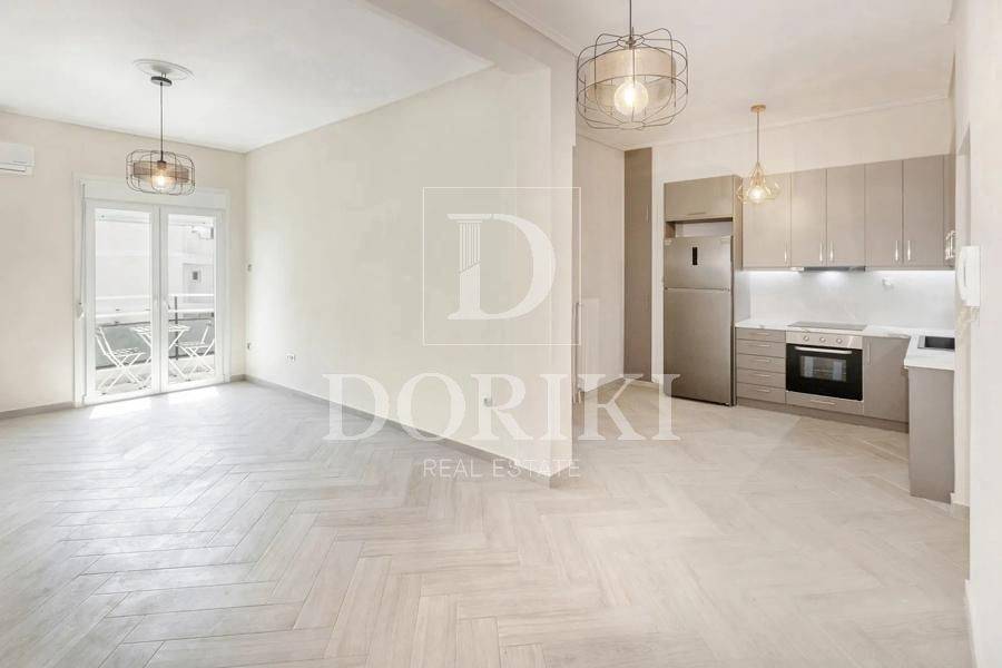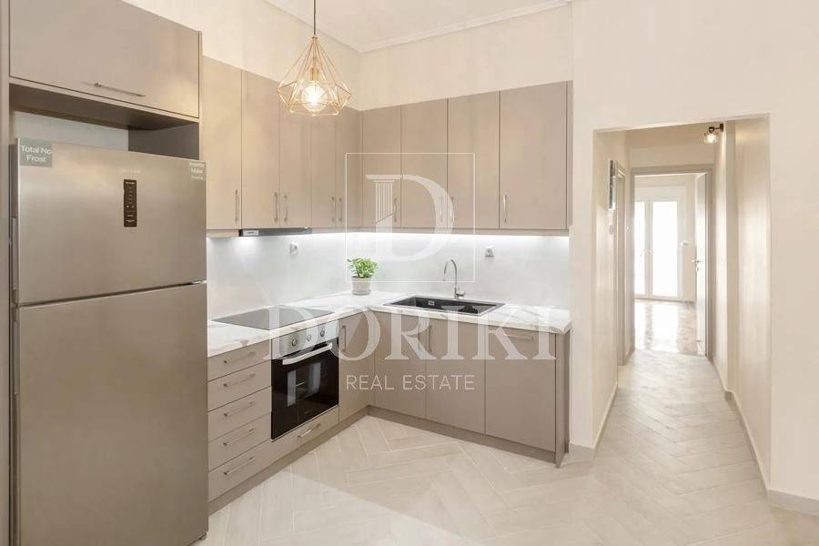 Agios Eleftherios - Apartment 73sqm electrical appliances furnished, bedrooms 2, levels 1, 4th, fully renovated, year built 1975, renovation year 2025, energy class D, living room, kitchen, bathroom, heating type: central (oil), air condition, quiet, dual aspect apartment, luminous, unobstructed view view, frontage, painted, balconies, tents, elevator, built in appliances, thermal shut-off frames, double glazed windows, door screen, wood & tile floors, secure door, luxurious, residential zone, access from asphalt, close to metro/train (up to 500m), close to university/college (up to 3000m), close to school (up to 500m), close to market (up to 100m), close to national road (up to 1000m), close to bus stop (up to 200m), close to hospital (up to 1000m), close to park (up to 200m).