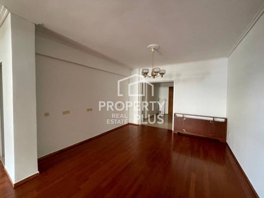 In a beautiful location in Cholargos, on the border with Papagou, opposite a grove, 153 sq.m. apartment on the 1st floor of a four-story building, constructed in 1980. It consists of an entrance hall, a spacious living area with fireplace and access to a lovely balcony, a large kitchen, 3 bright bedrooms, 1 auxiliary room, 1 bathroom, and a guest WC. The apartment features wooden floors, autonomous natural gas heating, a/c, solar water heater, a 6 sq.m. storage room, and a parking space in the pilotis, suitable for 1 large or 2 smaller cars.