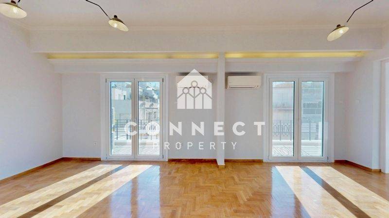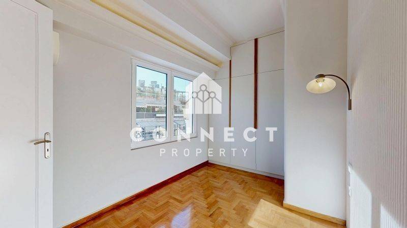 An exceptional, fully renovated through-apartment of 84 sq.m. is available for rent on the 6th floor of a well-maintained building, located on one of Kolonaki’s most prestigious streets, Voukourestiou Street.