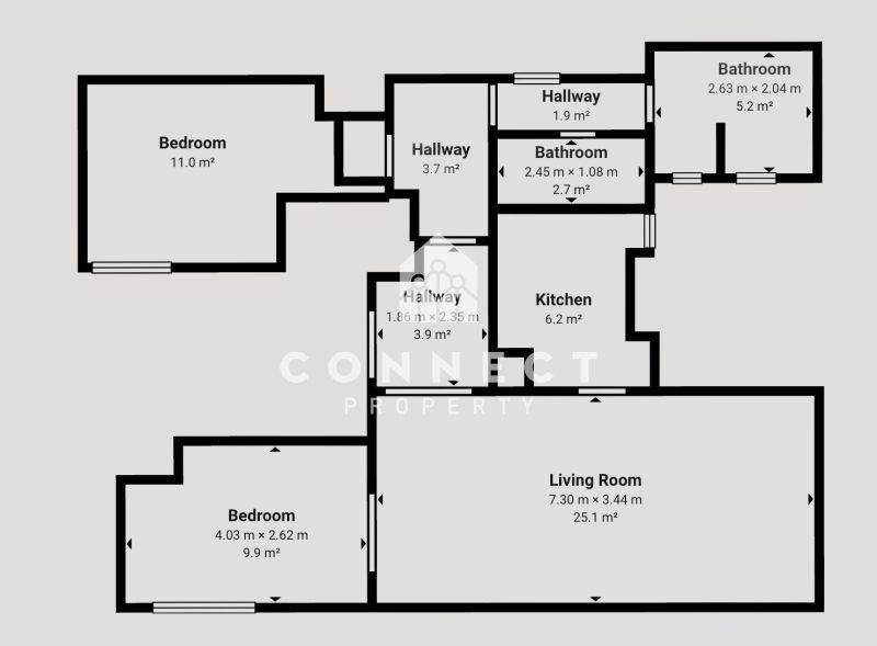 It consists of two elegant bedrooms, a spacious and naturally bright living area, a fully equipped kitchen with built-in appliances, a bathroom and a separate WC. Originally built in 1970, the apartment underwent a high-end renovation in 2025, using premium materials and contemporary design with great attention to detail.