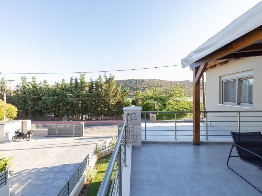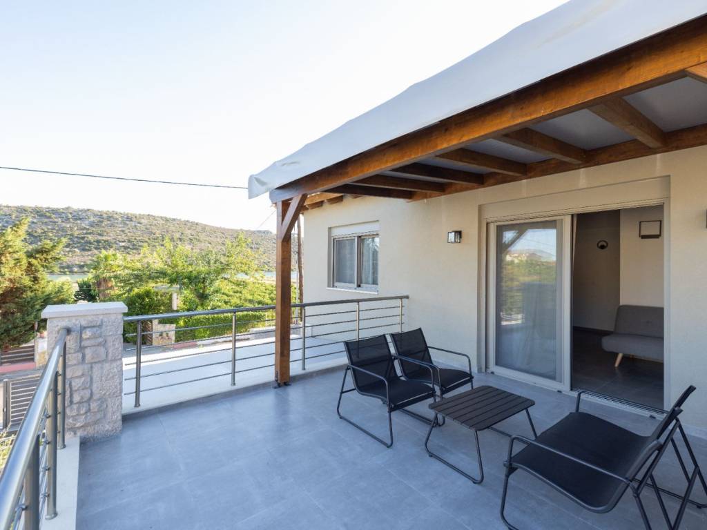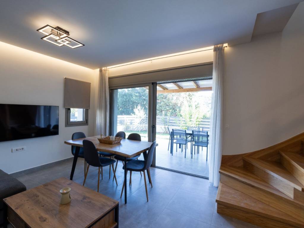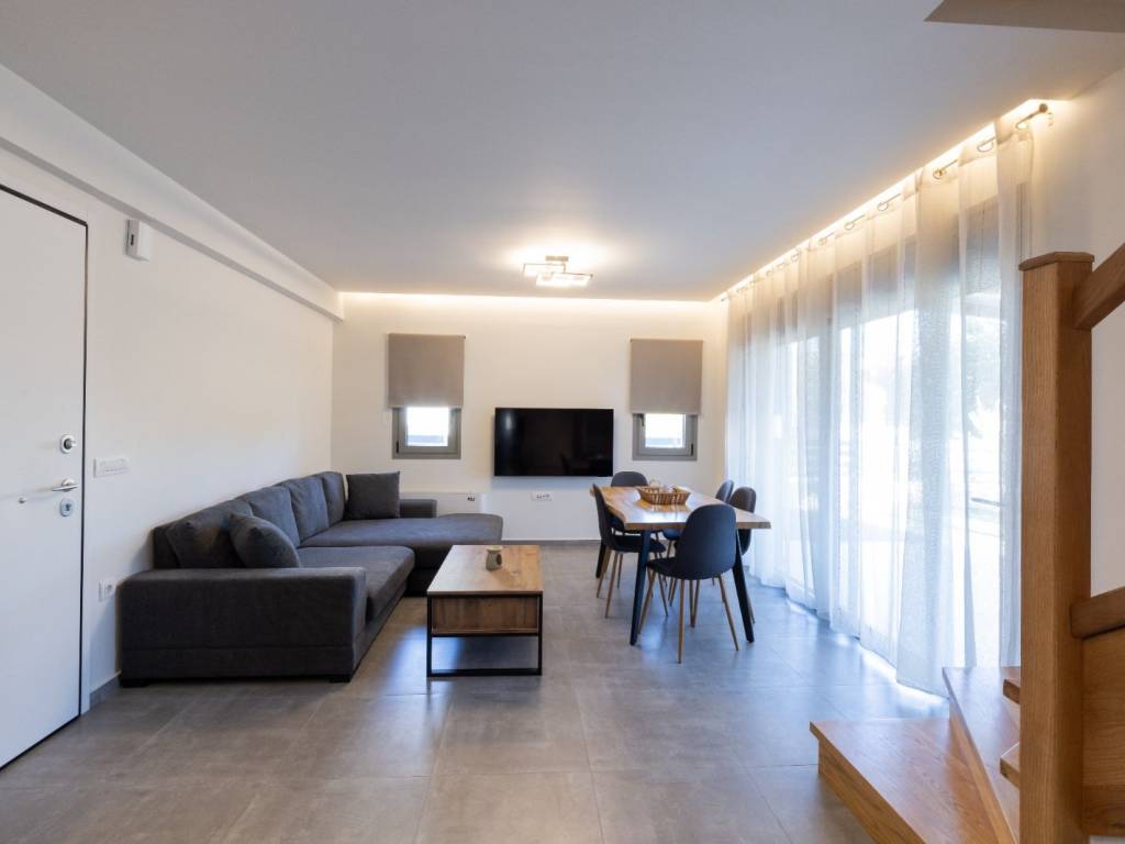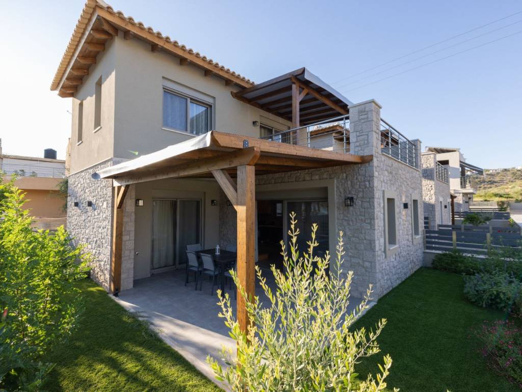 DETACHED HOUSE 120 SQ.M. | 2 BEDROOMS | 2 BATHROOMS | 2 LEVELS | YEAR OF CONSTRUCTION 2024 Located in a luxurious residential complex in Vivari, a newly built, brand-new two-level detached house is available for rent, featuring a private garden, generous storage areas, and beautiful views of the Vivari lagoon. The residence includes a private parking space and secured entrance with security doors both at the complex and at the property. Layout On the first level, there is an open-plan living room and kitchen area, a bright hall, a full bathroom, and one bedroom with direct access to the garden. Under the interior wooden staircase there is a spacious storage area. On the second level, there is a small sitting area, a full bathroom, and a second bedroom with a window. Additional features * Fully furnished and equipped * Aluminum window frames with double-glazed windows * Concealed lighting & modern electrical installations * Wooden interior staircase * Heat pump * Ample storage spaces * Parking space * Security door at the entrance of both the complex and the residence * Stone cladding & wooden design elements in interior and exterior areas * View of the Vivari lagoon The residence is delivered as shown in the photos, fully furnished and equipped.