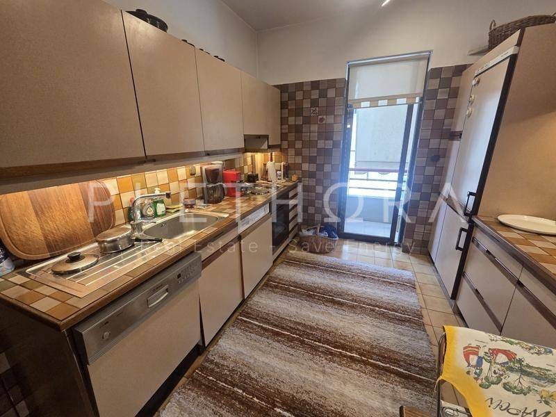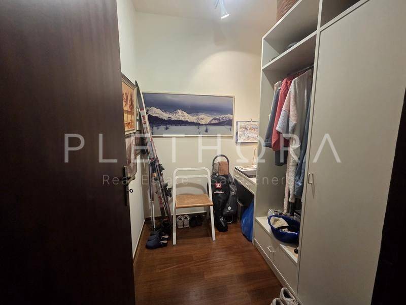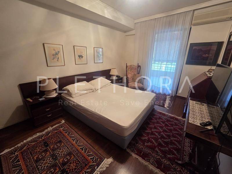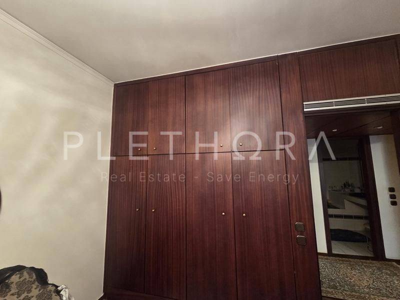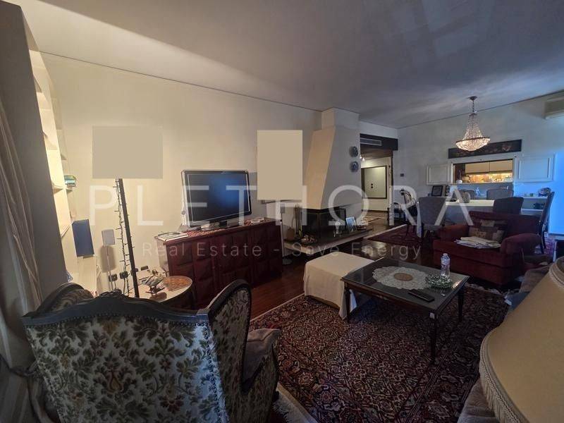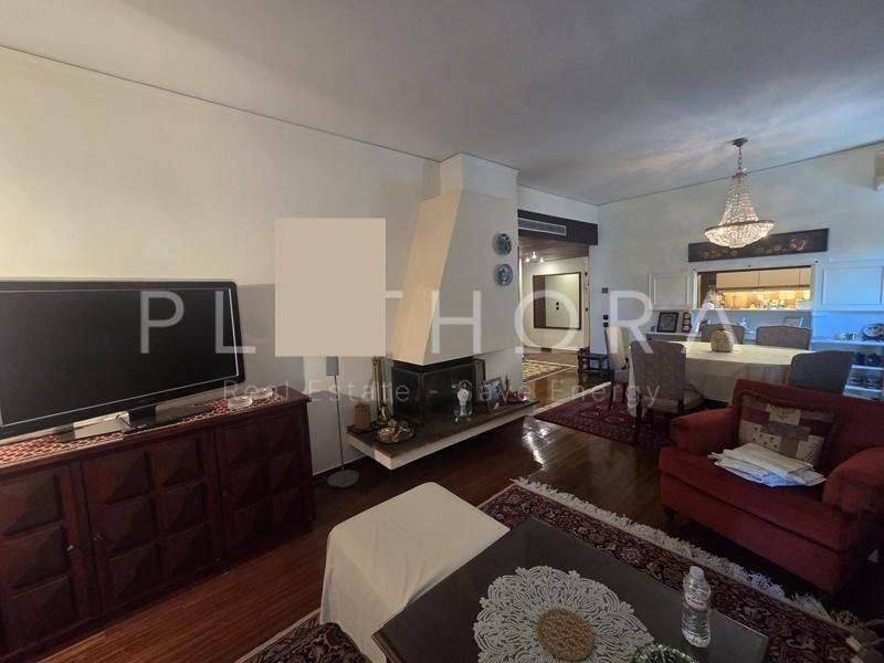 Kifissia, Kato Kifisia - Floor Apartment 113sqm plot 3400sqm, partially furnished, bedrooms 2, levels 1, 1st, very good condition, year built 1983, renovation year 2007, energy class F, living room, hall, kitchen, bathroom, wc, heating type: autonomous (natural gas), air condition, parking covered, quiet, dual aspect apartment, luminous, unobstructed view, frontage, drop ceiling, storage space 11sqm, fireplace, balconies, large balconies, tents, elevator, garden, built in appliances, aluminum frames, double glazed windows, wood & tile floors, separate kitchen, three phase electricity, night electricity discount rate, secure door, video doorbell, pets allowed, within city plan, residential zone, south-eastern orientation, access from asphalt, commercial use, close to square (up to 500m), close to school (up to 200m), close to metro/train (up to 200m), close to hospital (up to 500m).
