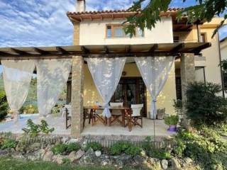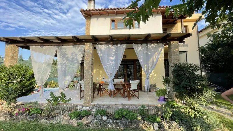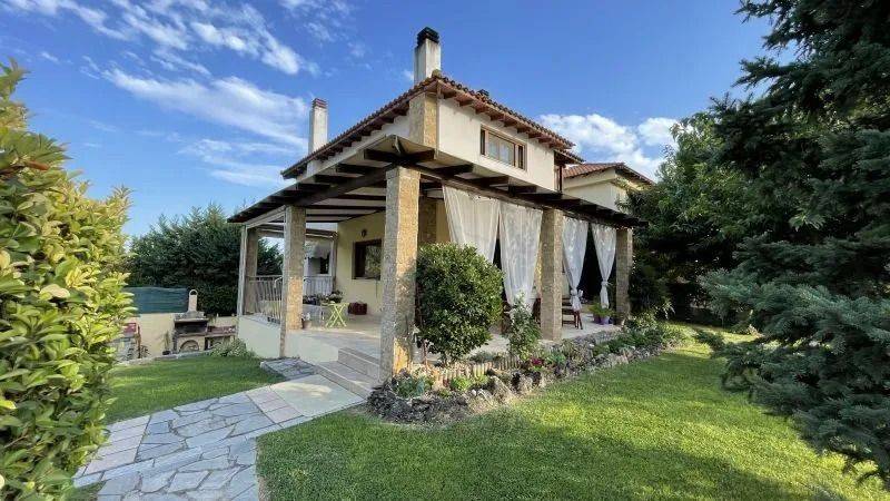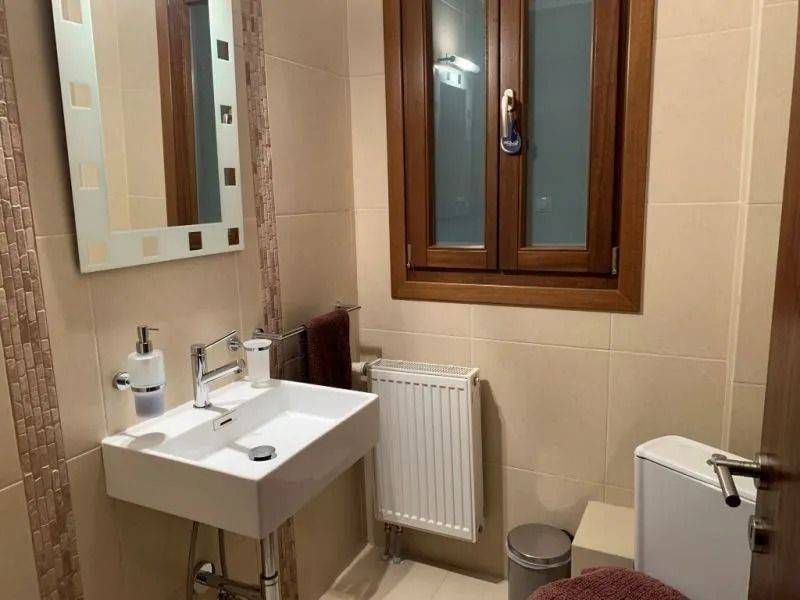 For Sale: Detached house, 230 sq.m., 3 levels, on an 800 sq.m. plot, in Vasilika, Thessaloniki. Each level is approximately 75 sq.m., plus a 15 sq.m. storage room. The first level consists of: 1 Living room 1 Dining room 1 Kitchen 1 WC Built-in fireplace The second level consists of: 2 Bedrooms (20 sq.m. each) 1 Walk-in closet room 1 Bathroom The basement consists of: 1 Bedroom 1 Kitchen 1 Living room 1 WC Built-in hot tub Property details: Year of construction: 2004, inhabited since 2007. Heating: Individual heating with oil boiler, pellet system, and air conditioning. Flooring: Wood and tiles. Internal staircase. Aluminum frames (brown), with double glazing and screens. 1 balcony on the second level. Security door and alarm system. Outdoor area includes: Swimming pool BBQ Covered area Parking spaces Located in a quiet area, close to an OASTH bus stop. Furniture and electrical appliances are included in the price. PRICE: €450,000 Technical Office & Real Estate PK Phone: 6984591496