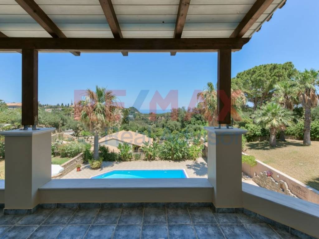 For sale: a unique luxury villa located in Bochali, Zakynthos, on a 2,585 sq.m. plot within the town planning zone, just 1.5 km from Zakynthos town and 2 km from the sea. The property features an 80-meter frontage on the main Zakynthos–Bochali road and is fully enclosed by a beautifully crafted stone wall. The residence, with a total area of approximately 600 sq.m., is developed over four levels and offers unobstructed views, complete privacy, and exceptional construction quality. The plot includes a 71 sq.m. swimming pool with independent water tank and engine room, exterior WC, storage areas, BBQ facilities, garden storage, dog house, landscaped gardens and orchard arranged in multiple elevation levels. A 7-meter-deep well with a 4-meter diameter ensures full irrigation autonomy through an automatic underground pipeline system. The house is organized into four floors. The first level, 196.32 sq.m., includes two bedrooms, an open-plan kitchen–dining–living area with fireplace, bathroom, storage room, garage, engine room, water tank, and a covered veranda, and has an independent entrance. The second level, 181.62 sq.m., serves as the main entrance and features a kitchen and a large open-plan space consisting of dining area, living room, office with fireplace, second living room with fireplace, WC, and both covered and open verandas. The third level, 140.76 sq.m., offers a sitting area, three bedrooms, two bathrooms, a dressing room, balconies and spacious verandas. The fourth level, a 73.18 sq.m. attic, includes an open-plan area, bathroom and veranda. The villa features autonomous underfloor heating, alarm system, fireplaces, PVC or aluminum frames with double glazing, tiled floors, built-in wardrobes, air conditioning, solar water heater, satellite dish, awnings, insect screens, security door, accessibility for people with reduced mobility, playroom, and an internal staircase connecting all levels. The exterior spaces provide excellent privacy and significant potential for further landscaping. Constructed in 2004, the property holds an energy certificate class A. RE/MAX Real Advisor, contact phone: 2155550611, email: remax.real.advisor@gmail.com, website: