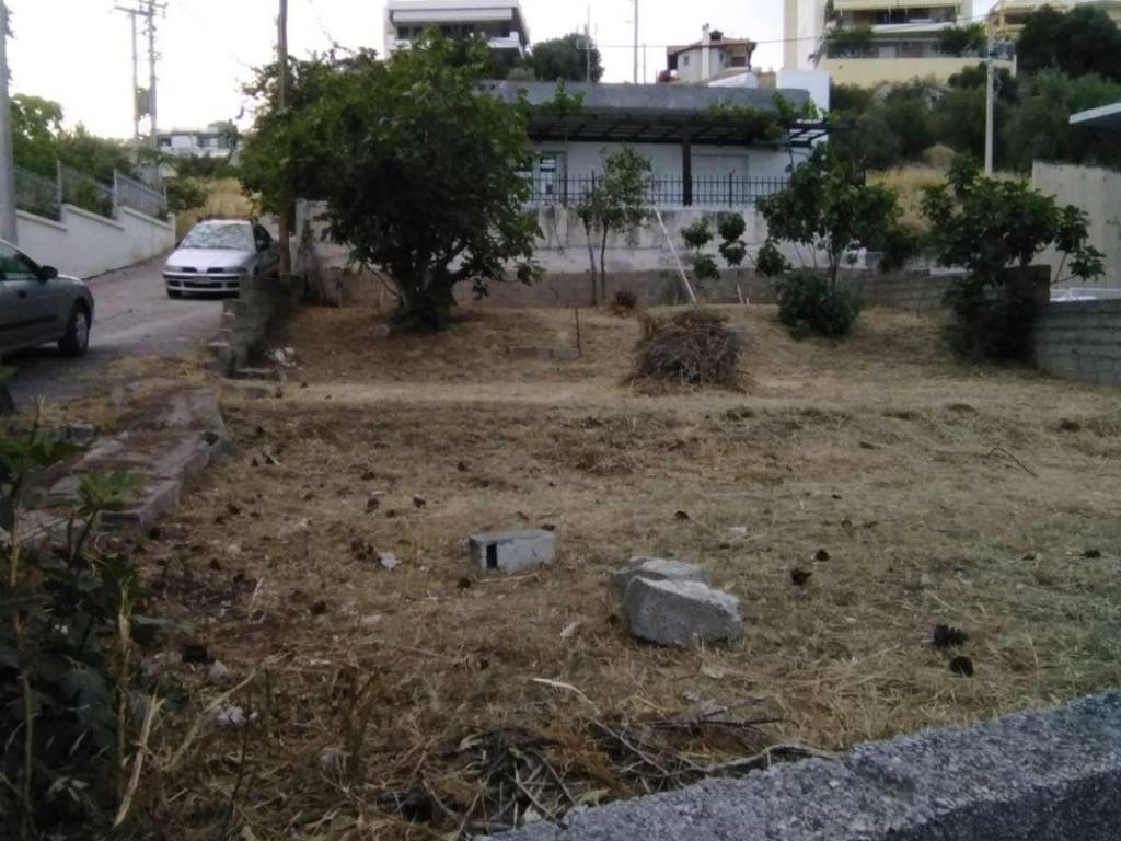 This is a 225.72 sq.m. plot of land located on a central road with OASA public transportation access. It is fenced with concrete blocks and has an existing EYDAP water meter. The property falls within the General Building Regulations (GOK). There are two olive trees at the corners of the southern side, as well as a fig tree.