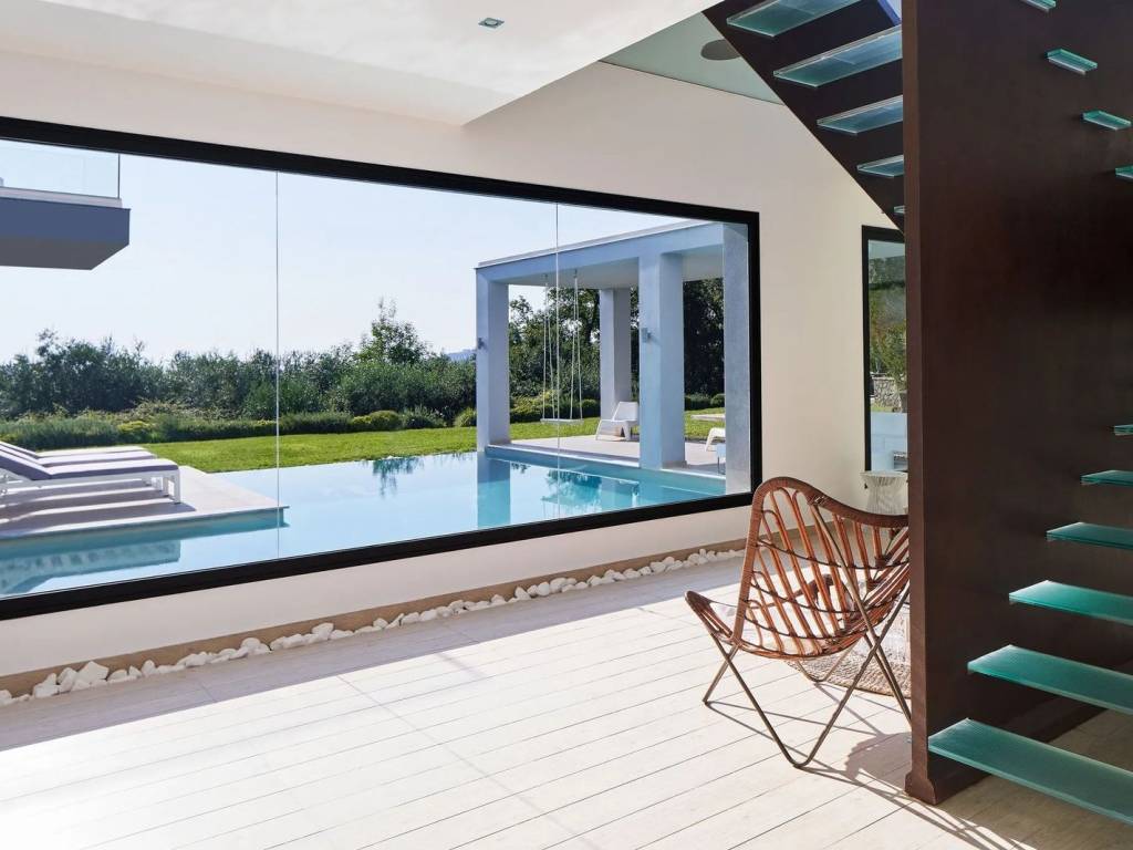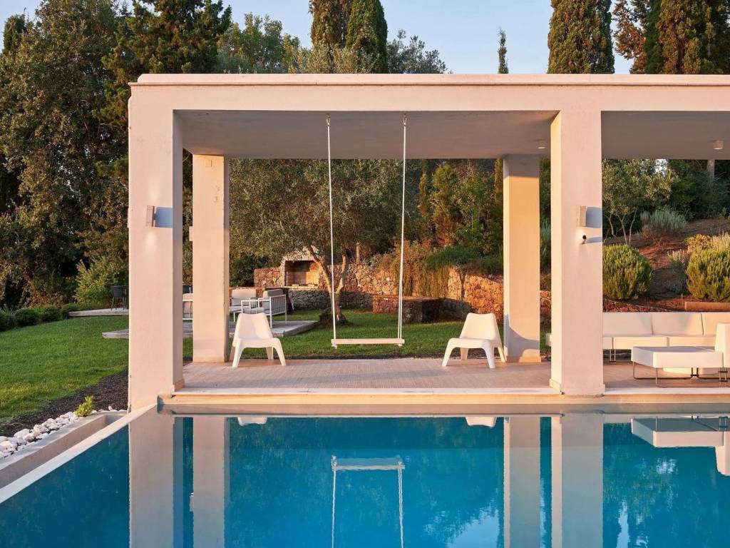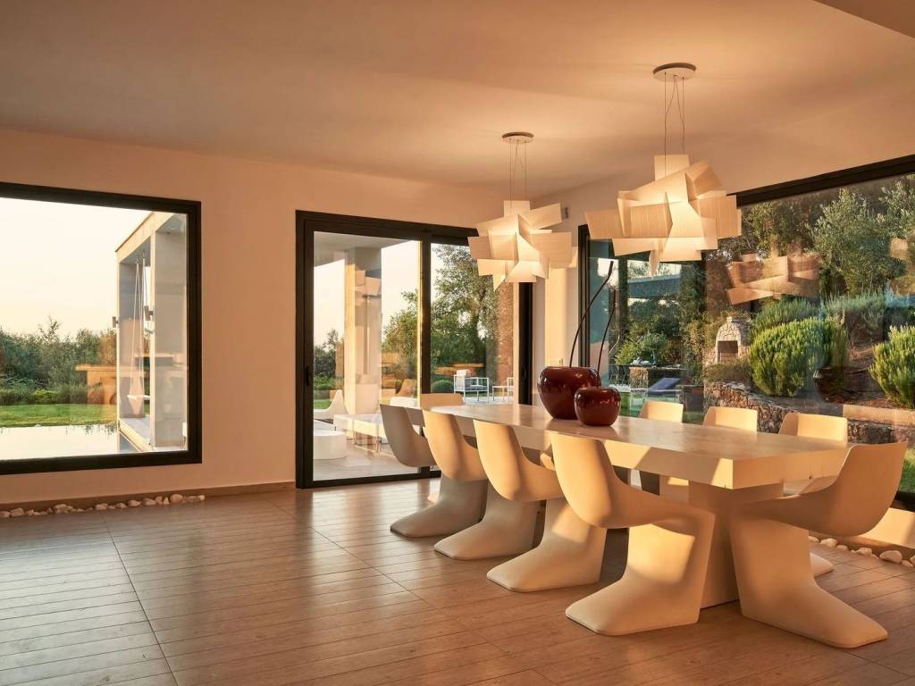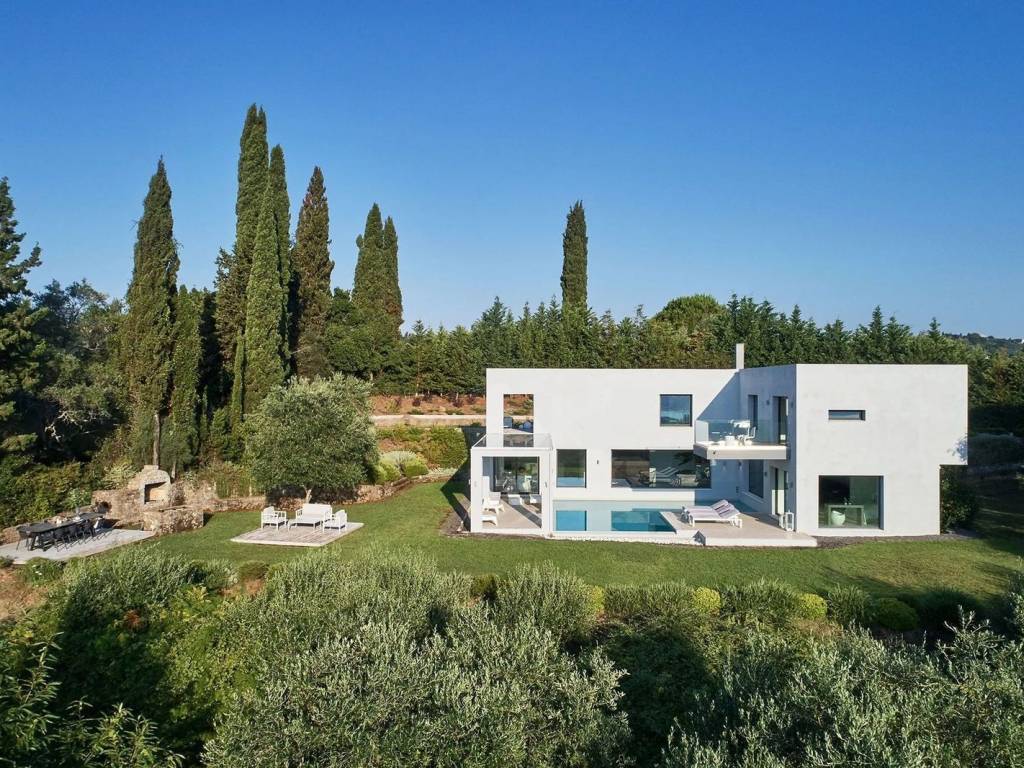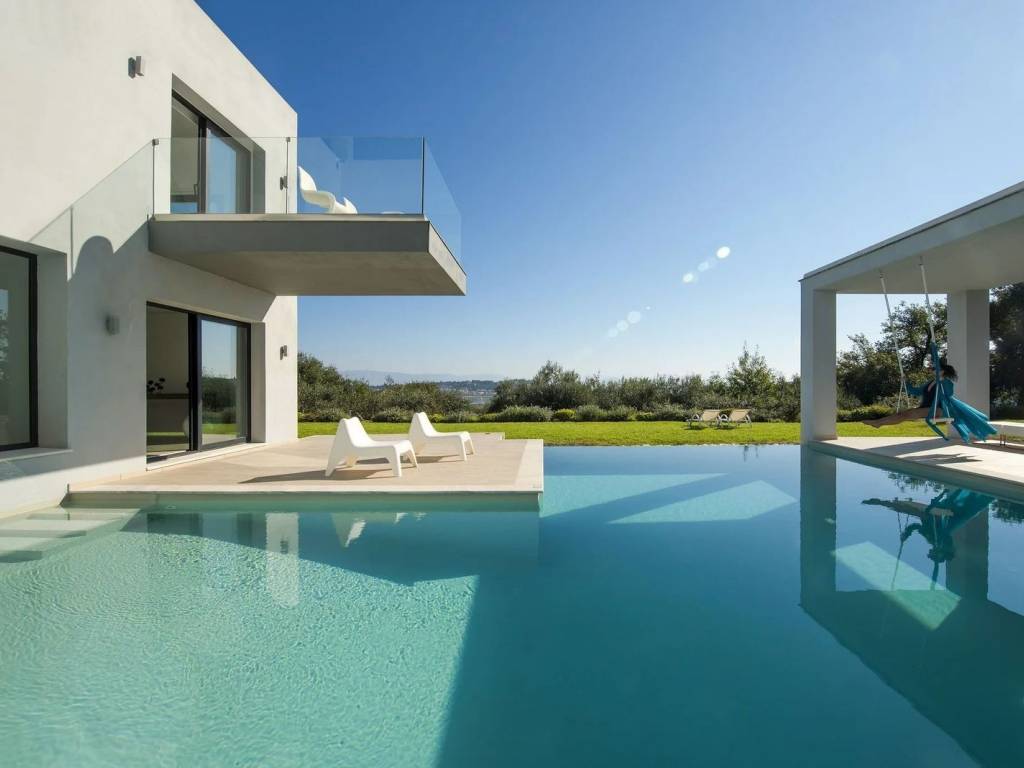 For Sale: Contemporary Villa with Sea Views and Pool in Viros, Corfu A stunning example of contemporary architecture, this modern villa of 380sq.m. offers the perfect blend of privacy, luxury, and modern design. Set on an expansive plot of 5.369sq.m. with panoramic views and exceptional outdoor living spaces, it’s ideal for those seeking a high-end retreat in Corfu. Layout & FeaturesBedrooms: 4 Bathrooms: 3 Private L-shaped swimming poolModern fireplaceOpen-plan kitchen with breakfast barElegant dining area & living room with billiard tablePlayroomFloor-to-ceiling windowsHigh-quality materials & contemporary finishesLocation Located in the area of Viros, this modern villa is just a short drive from Corfu Town, sandy beaches, and the vibrant resorts of the South coast. The setting offers both privacy and convenience, ideal for permanent living or a luxury holiday home. HighlightsSea views from the master suite Seamless indoor-outdoor flow Stylish and minimalist design throughout Spacious outdoor lounge and covered dining areaFamily-friendly layout across 2 levels Close to amenities and popular beaches