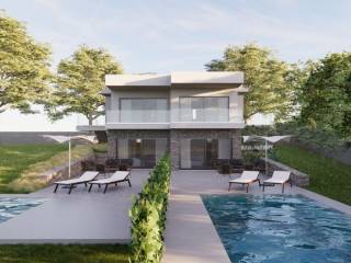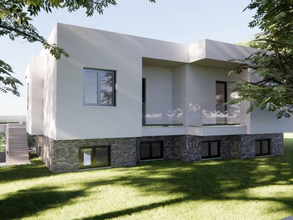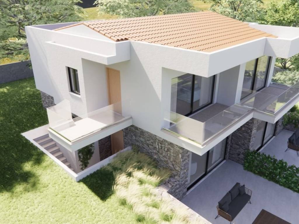 Maisonettes under construction in the village of Kriopigi, Chalkidiki. Two maisonettes, each has 100 sq.m of living space, will be built on a 3,427 sq.m plot on two levels. Each level can be used separately as apartments with a separate entrance, kitchen, living room, and bedrooms. This is an excellent investment, suitable for both personal use and rental. For an additional fee, a swimming pool can be built on the plot and a heating system installed, allowing the houses to be used in the winter.