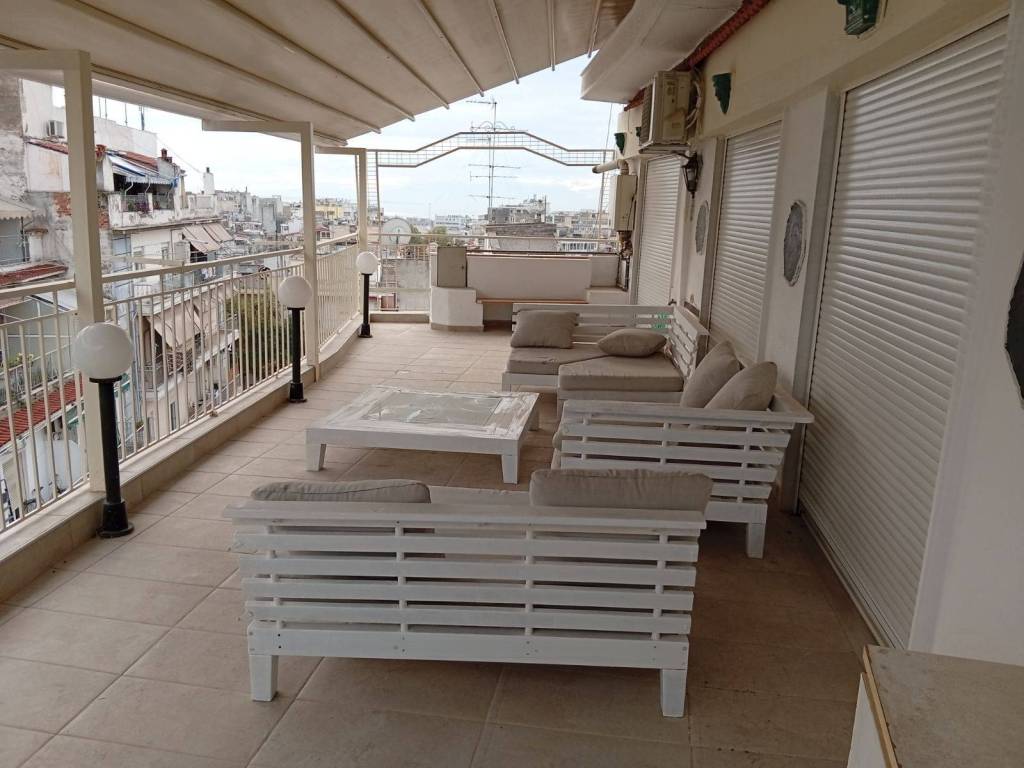 Ενοικιάζεται ρετιρέ 3ου ορόφου με ασανσέρ, 55τμ με ένα υπνοδωμάτιο, σαλοκουζίνα, μπάνιο και μεγάλη βεράντα 42τμ με θέα μέχρι και το λιμάνι. Είναι ανακαινισμένο, περιλαμβάνει ηλεκτρικές συσκευές (ψυγείο, κουζίνα, πλυντήριο, κλιματιστικό), επιπλέον μεγάλο σαλόνι μπαλκονιού με πέργκολα και θυροτηλεόραση. Διαθέτει δάπεδο με πλακάκι, κουφώματα αλουμινίου, σίτες, πόρτα ασφαλείας και ατομική θέρμανση φυσικού αερίου σε συνδυασμό με τζάκι. Υπάρχει δυνατότητα επίπλωσης από τον ιδιοκτήτη, ανάλογα με την επιθυμία ή τις ανάγκες του ενοικιαστή. Ιδανικό για φοιτητές ή εργαζόμενους λόγω κεντρικού σημείου και πρόσβασης σε μέσα μεταφοράς σε μικρή απόσταση από την Αγίου Δημητρίου και 4 λεπτά με τα πόδια από την στάση μετρό του Βαρδάρη.