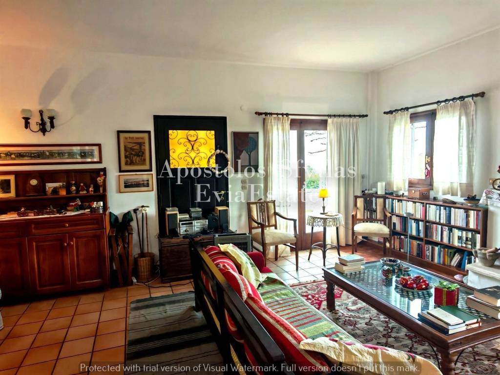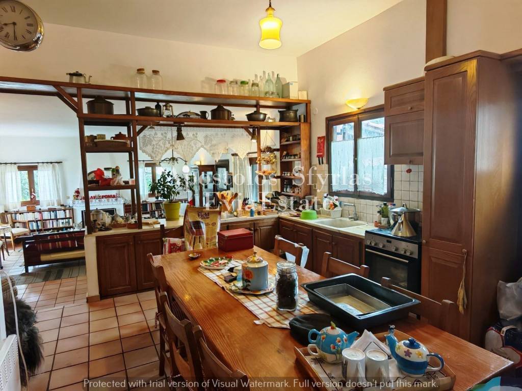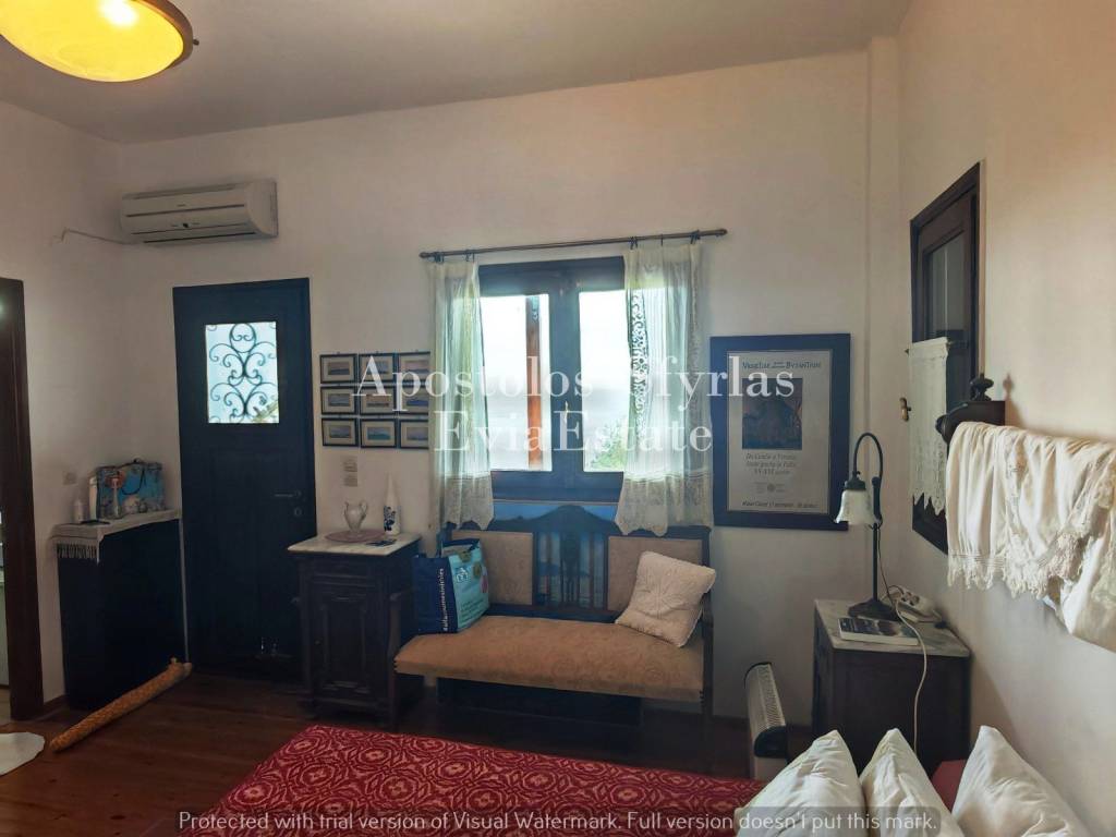 Unique Architectural Residence with Unobstructed Aegean Sea Views – Limnionas, Evia Set in an idyllic location, just 10 minutes from the turquoise waters of Limnionas beach, a detached residence of distinct architectural aesthetic is for sale. The property spans 143 sq.m. and is situated within a lush estate of 4,000 sq.m. The Residence & Design Built in the 1990s with a valid building permit, the home stands out for its split-level design, which adds character and functionality: Level 1: Features a welcoming living room area. Level 2: On a different elevation, you will find the kitchen, the main bathroom, and one bedroom. Upper Level: The Master Bedroom dominates the highest point of the house, offering absolute privacy. It includes a walk-in closet, an en-suite bathroom, and a private veranda with unlimited views of the Aegean Sea. Lower Level: Located beneath the Master Bedroom is an autonomous studio/guest house. It is ideal for hosting friends or for rental use, ensuring complete independence. Outdoor Spaces & The Estate The property is situated on a former vineyard and is now surrounded by 50 trees (young olive trees, etc.), offering tranquility and a deep connection with nature. The outdoor areas are impressive: -- Large, multi-level courtyards and verandas with stone paving. -- A natural "balcony" overlooking the Aegean, perfect for relaxation. -- Auxiliary spaces including a 17 sq.m. stone cellar/storage, an 11 sq.m. garden storage unit, and a 12.5 sq.m. boiler room/storage. Equipment & Amenities The house is sold fully furnished and equipped with all electrical appliances (excluding personal items and three specific pieces of furniture/decor from the living rooms). It is a "turn-key" property, ready for immediate habitation, featuring: * Autonomous heating (oil radiators), 2 storage heaters, and 2 Air Conditioning units. * A large water tank with an 80 cubic meter capacity. * Active connection to the Municipal water network and the Public Power Corporation (DEH) electricity grid. Location The property is situated on an elevated position that ensures unobstructed sea views. It is located just 1 hour from Chalkida and 2 hours from Athens International Airport "El. Venizelos". Nearby beaches: Limnionas (10 mins), Sarakiniko, Vlachia (15 mins). --- *Important Notes:* * For security reasons and to protect the property, the exact address mentioned in the listing may be indicative of the area and not the precise location. * The characteristics, information, and measurements (area, dimensions, etc.) of the property listed were provided by the owner; our office has not performed a technical audit on the data provided. * As a Real Estate & Engineering firm, we offer high-quality integrated services with respect to our clients, society, and ethical standards. * This property is immediately available for viewing by appointment (via phone or email). * During the property viewing, it is mandatory to present your ID card and Tax Identification Number (AFM) in accordance with Law 4072/2012.
