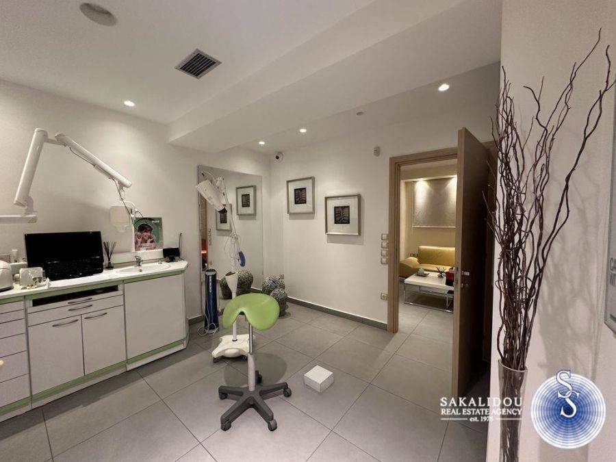 In the heart of Glyfada, a modern 75 sq.m. office is available for sale, located in an excellent area on the 2nd floor of a well-maintained professional building. The space consists of three independent work areas, a small kitchenette, one bathroom, and one WC. It features autonomous heating with fan coil units, a security alarm system, and a balcony suitable for placing a professional sign. The office is in excellent condition and is currently configured as a dental clinic, with the option to purchase the full dental equipment. Its location is highly privileged, offering easy access to public transportation, banks, and shops. Ideal for a medical practice, office, or other professional use.