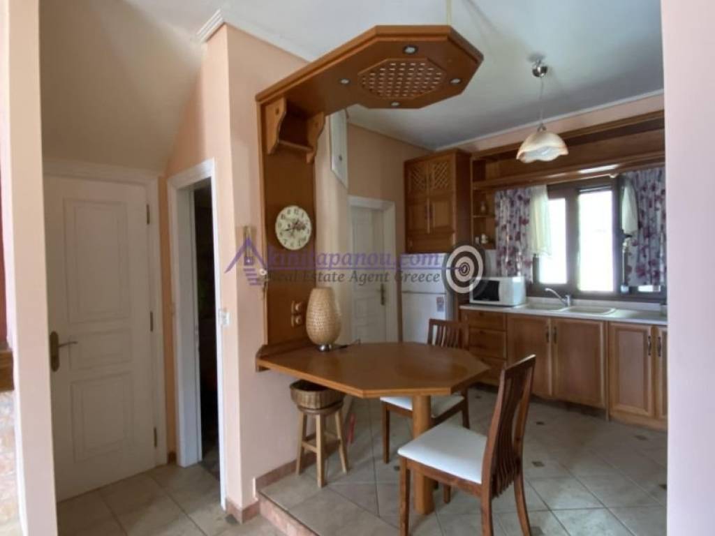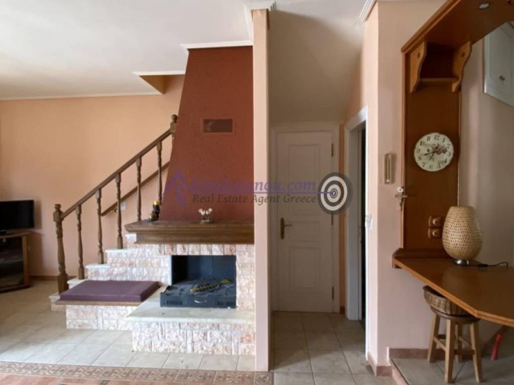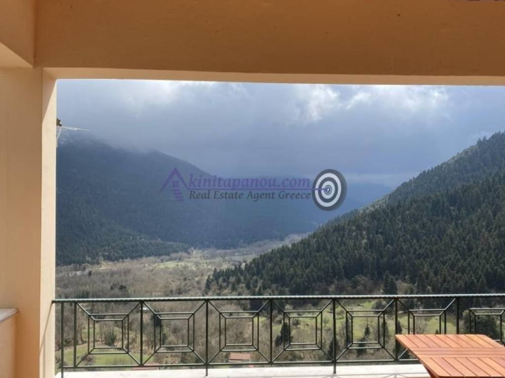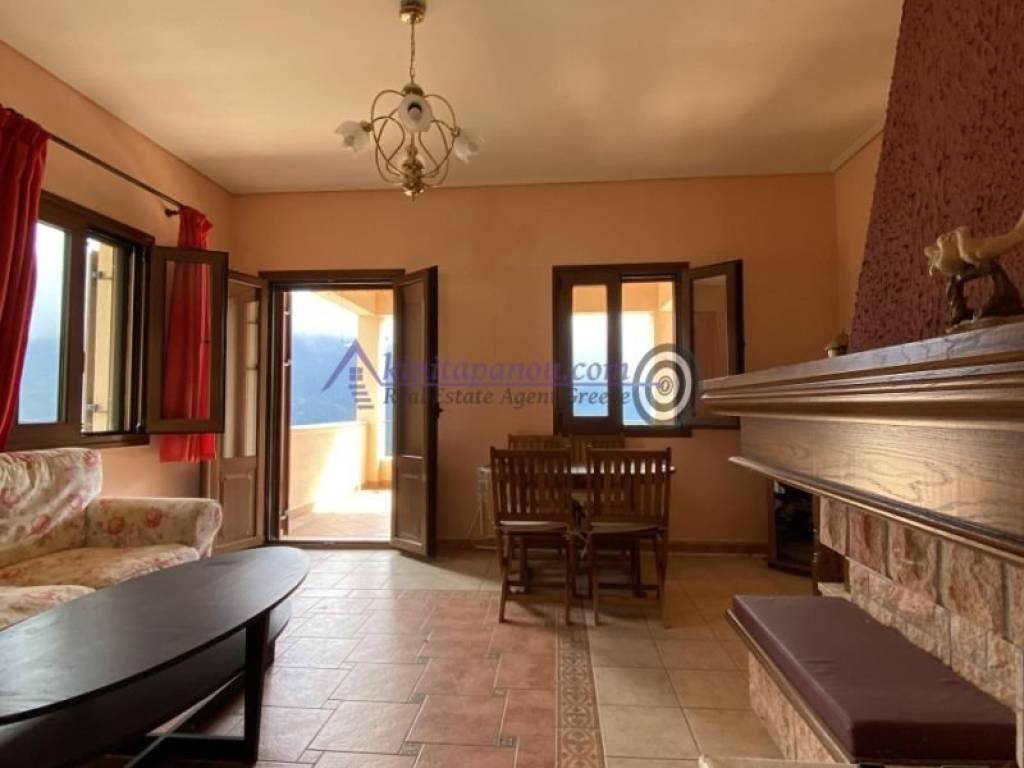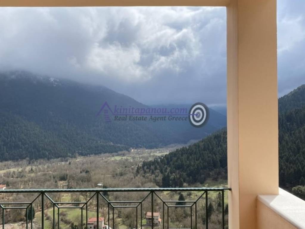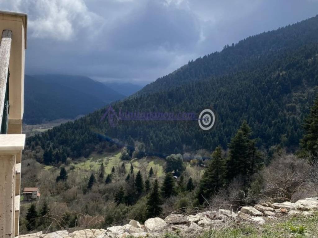 Property code: 1-240 - Karpenisi/ Koryschades - FOR RENT - House consisting of 2 semi-detached maisonettes. Furnished, 3 levels, total area 175 sq.m. on a plot of 1620 sq.m. Unique view! It consists of 4 bedrooms, 2 living rooms with fireplace, 2 kitchens, 2 bathrooms, 2 WC, 4 verandas, 2 storage rooms, playroom, parking. Built in 2003. It has pre-installation for heating (to be agreed), aluminum frames with double glazing, tiled roof, internal staircase. Distance from the city 5000 meters, distance from the Velouchi ski center 15000 meters. Price: €880 (They are also sold separately for €450 each)