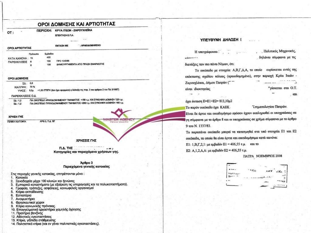 Code: 6505 - Patras - Neapoli area, for Sale plot of land with a total area of approximately 406.55m², Level. Facade, View, Investment. WITHIN settlement limits and WITHIN zone. Even, Buildable, Bright. BUILDING AND PERFECTION CONDITIONS SD 08 COVERAGE: 70% HEIGHT: 8.5m. 11.50 ROOF (The provision of par. 3 of article 2 of P.D. 3/1987 does not apply) LAND USE GENERAL RESIDENCE In general residence areas, only: 1. Residence 2. Hotels up to 100 beds and hostels 3. Commercial stores (with the exception of supermarkets and department stores). 4. Offices, banks, insurance companies, public benefit organizations 5. Educational buildings 6. Restaurants 7. Refreshments 8. Religious places 9. Social welfare buildings 10. Low-noise professional workshops 11. Gas stations 12. Sports facilities 13. Cultural buildings (and cultural facilities in general). 14. Buildings, parking lots DO NOT FORGET TO WATCH THE VIDEO OF THE PROPERTY with a virtual tour as if you were there! The pin on the map has been placed approximately for obvious reasons. The address of the property may differ from the actual one. The exact location information will be provided after confirmation of the meeting. For any information, please contact us at 6943931222 or visit our website www.masteragency.gr using the code 6505. Price: €75,000 CODE: 6505 * THE EXACT ADDRESS OF THE PROPERTY IS GIVEN AFTER SIGNING THE INDICATION ORDER * ► WEBSITE: www.masteragency.gr *The areas, common areas, topographic, contracts and year of construction have not been checked by our office, they are listed based on what the owner declares to us. **Attention! In order to indicate the property, it is necessary to indicate the police ID and the VAT number. yours according to Law 4072/11-4-2012 Government Gazette 86 A. With professionalism, speed and reliability, we ensure services to serve and satisfy your desires in the field of renting, buying, selling and general management of real estate. Our guarantee for our clients is our many years of experience in the field, as well as the organized and comprehensive work that our office offers. We will be happy to serve you. Follow us on all social networks and find easily and quickly the property that suits your needs. FOR MORE PROPERTIES AND INFORMATION VISIT OUR WEBSITE AT: www.masteragency.gr CONTACT US: ► WEBSITE: www.masteragency.gr ► E-MAIL: info@masteragency.gr ► MOBILE: 6943 93 1222