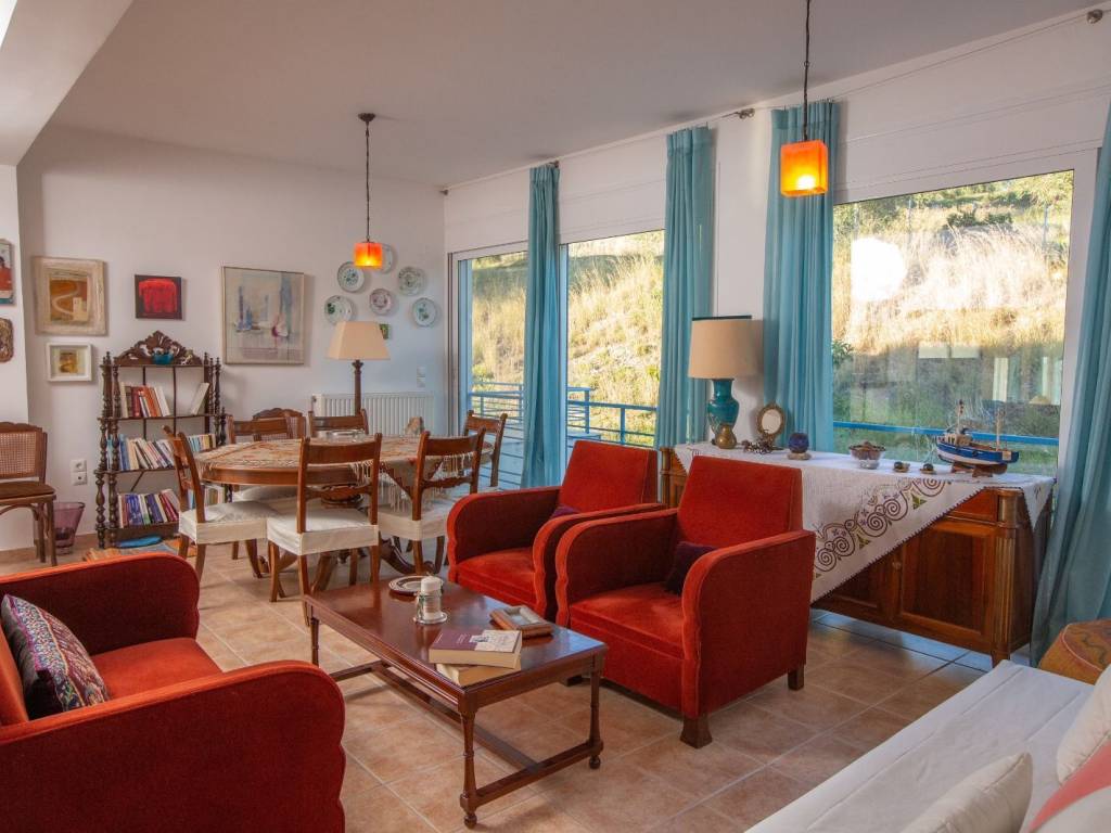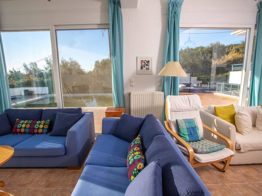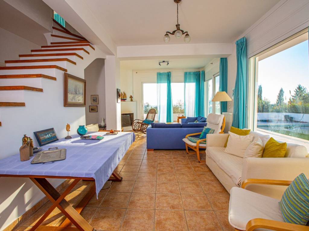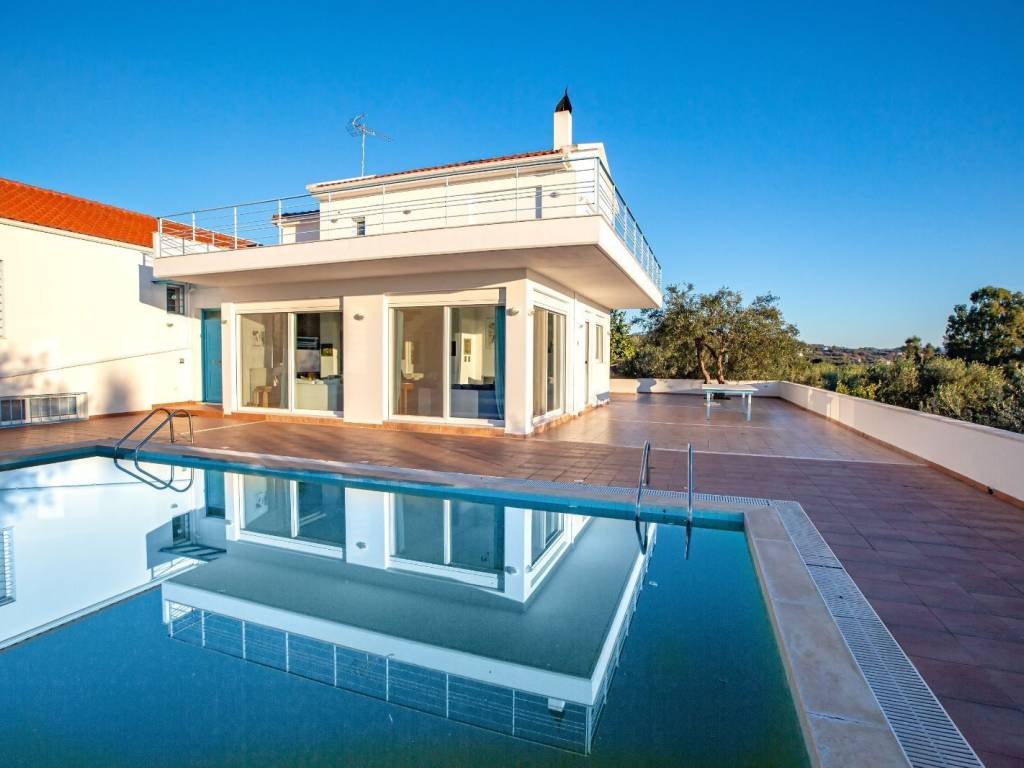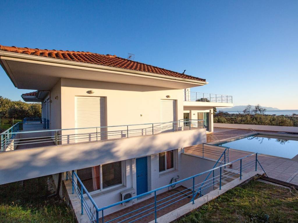 Βίλλα 350τμ με πισινα χτισμένη σε αμφιθεατρικο οικόπεδο 4100τμ με απεριόριστη θεα στη θάλασσα. Αποτελείτε απο την κυρια κατοικία 250τμ και δυο ημιυπόγεια ανεξάρτητα διαμερίσματα των 60τμ και 40τμ αντιστοιχα.