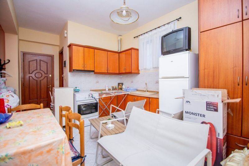 For sale: 1st-floor apartment with a total area of 46,21 sq.m. in Stavros, Thessaloniki, with an additional semi-basement studio of 23 sq.m. The apartment consists of an open-plan living room with kitchen, two bedrooms, and one bathroom. It features aluminum frames and air conditioning (A/C). Via an external staircase, there is access to the semi-basement floor, where an additional space has been converted into an independent studio, consisting of an open-plan area with kitchen and bathroom. The studio also features aluminum frames and a boiler. The apartment is located in the city center, close to shops, the central market, and local dining establishments. It is an ideal choice for permanent residence, vacation home, or investment, with the possibility of separate exploitation of the two spaces. It is only 220 meters from the sea and faces northeast.
