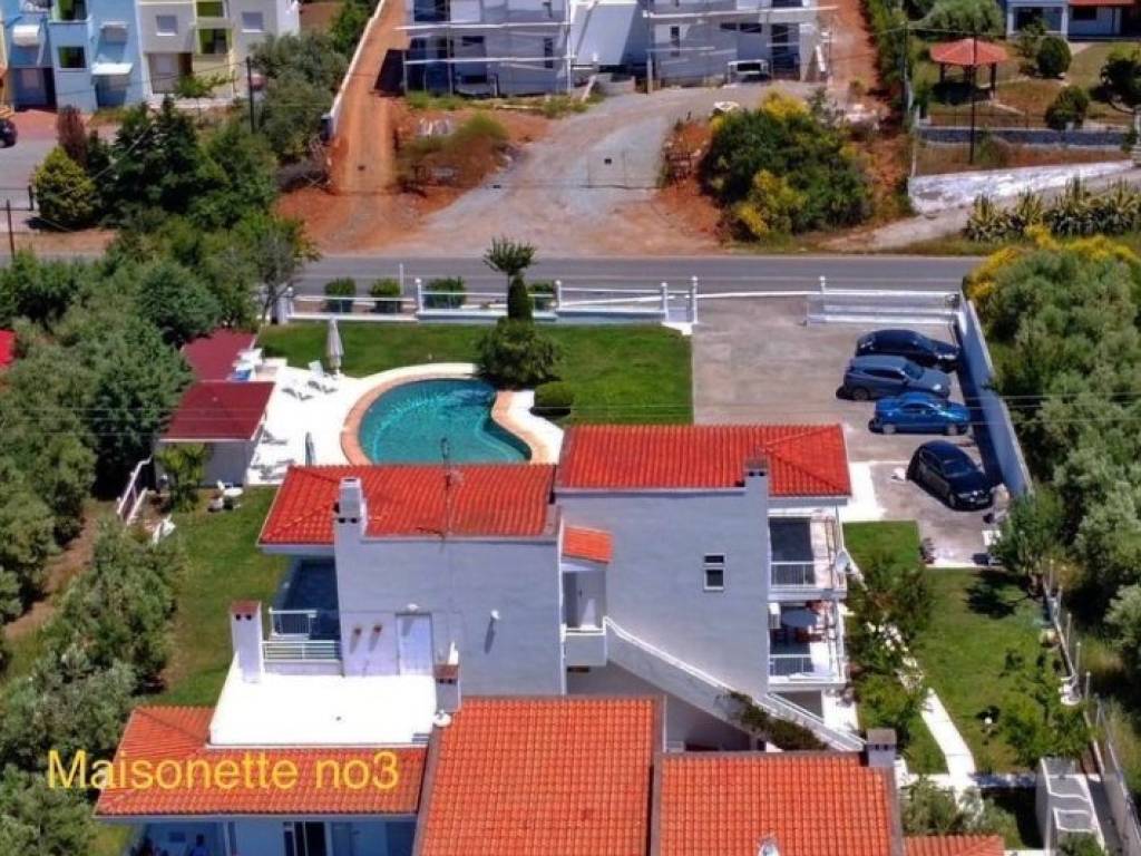 Πρόκειται για συγκρότημα μεζονετών συνολικής επιφάνειας 2.500 τ.μ., το οποίο διαθέτει άνετο προαύλιο χώρο με πισίνα. Το ακίνητο ανακαινίστηκε πλήρως το 2019 και βρίσκεται σε άριστη κατάσταση. Είναι πλήρως επιπλωμένο και εξοπλισμένο, με κρεβάτια και όλες τις απαραίτητες ηλεκτρικές συσκευές, προσφέροντας υψηλό επίπεδο άνεσης και αισθητικής. Ο χώρος είναι καλαίσθητος, λειτουργικός και έτοιμος προς άμεση χρήση, ιδανικός για τουριστική εκμετάλλευση Maisonette no. 1: The base floor has two bedrooms and one bathroom. The first bedroom has a queen size bed and the second bedroom consists of two single beds. On the first floor you will find the fully equipped kitchen and the living room. Maisonette no. 2 : The base floor has two bedrooms and one bathroom. The first bedroom has a queen size bed and the second bedroom consists of one queen bed as well. On the first floor you will find the fully equipped kitchen and the living room. Maisonette no. 3 : The base floor has two bedrooms and one bathroom. The first bedroom has a queen size bed and the second bedroom consists of one queen bed as well. On the first floor you will find the fully equipped kitchen and the living room. Maisonette no. 4 : The base floor has two bedrooms and one bathroom. The first bedroom has a queen size bed and the second bedroom consists of two single beds. On the first floor you will find the fully equipped kitchen and the living room. Maisonette no.5 : The base floor has two bedrooms and one bathroom. The first bedroom has a queen size bed and the second bedroom consists of a bunk bed. The lower bed from the bunk bed opens and it becomes a queen size, thus the bunk bed can accommodate up to three people. On the first floor you will find the fully equipped kitchen and the living room. Our complex of maisonettes has a huge garden of 2.5 acres, which includes a large, shared pool, three luxury outside showers, which can be used whenever you please, free parking for up to twelve cars and of course, free wi-fi within the entire complex. Further, in Chalkidiki Villa you will find a barbeque area, with two renovated hand-built barbeque spots, which will encourage you to enjoy a barbeque night in the Villa. 1) Income Approach (βάσει ετήσιου τζίρου 105.000 €) Απόδοση 5% → 2.100.000 € Απόδοση 6% → 1.750.000 € Απόδοση 7% → 1.500.000 € 2) Market Approach – Κτίσμα 410 τ.μ. 2.200 €/τ.μ. → 902.000 € 2.790 €/τ.μ. → 1.143.900 € 3.000 €/τ.μ. → 1.230.000 € 3) Market Approach – Γη 2.500 τ.μ. 100 €/τ.μ. → 250.000 € 150 €/τ.μ. → 375.000 € 240 €/τ.μ. → 600.000 € 4) Συνδυασμένα σενάρια Χαμηλό σενάριο → 1.152.000 € Μεσαίο σενάριο → 1.518.900 € Υψηλό σενάριο → 1.830.000 €