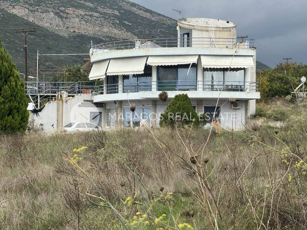 KOKLA, N/A 194 sq.m. in 5.383 sq.m. plot, 2 levels, 1st basement 74 sq.m., ground floor 104 sq.m., county house, for investment, at residential area, ektos schedioy, year of construction 2002, n/a, with view panoramiki, 3 b/r, 2 living rooms, 2 bathrooms, 2 kitchens, double-sided, front facing, bright, corner, heating endodapedia, floor heating, with energy class N/A, with floor type plakaki, with aloyminioy joinery, double glazing, awnings, internal staircase, elevator, veranda, pets allowed, garden, without common expenses, distance from sea 8.000 m., storage room 17 sq.m., 4 open garages, with zoning n/a, asfaltos access, road width 8 m. Argolida - Kokla Argos, in a quiet suburb of Argos, in the settlement of Kokla, a detached house with a total area of 194 sq.m. is available for sale, built on a plot of 5,383 sq.m. The residence is located outside the city limits, offers complete privacy, and is an ideal choice for both permanent residence and vacation or investment use. It is developed on two levels, with a first floor area of 104 sq.m. and a ground floor area of 74 sq.m., with a functional interior layout that allows for flexible configuration of the spaces. They are connected by an internal staircase, and there is also pre-installation for an elevator. Its semicircular architecture, combined with the natural slope of the plot, offers unlimited panoramic views of the sea, creating an environment of tranquility and high aesthetics. The residence is airy and bright, with large openings that ensure direct contact with the outdoor space. There is also a 16.6 m² stairwell landing on the roof, suitable for use as storage space. Built in 2002, it features aluminum window frames, tiled floors, underfloor heating, air conditioning, and awnings, while the outdoor area of the plot includes open parking spaces and 34 sq.m. of remaining building rights. Access is easy via an 8-meter-wide paved road. This is a property with excellent orientation and a sense of freedom, ideal for those seeking comfort, tranquility, and unobstructed views in a natural environment. The information and characteristics of the properties we present are based on the information provided by the property owners. The locations shown on the map may not be accurate. In order to indicate the property, it is necessary to show your identity card or passport and your PTN.