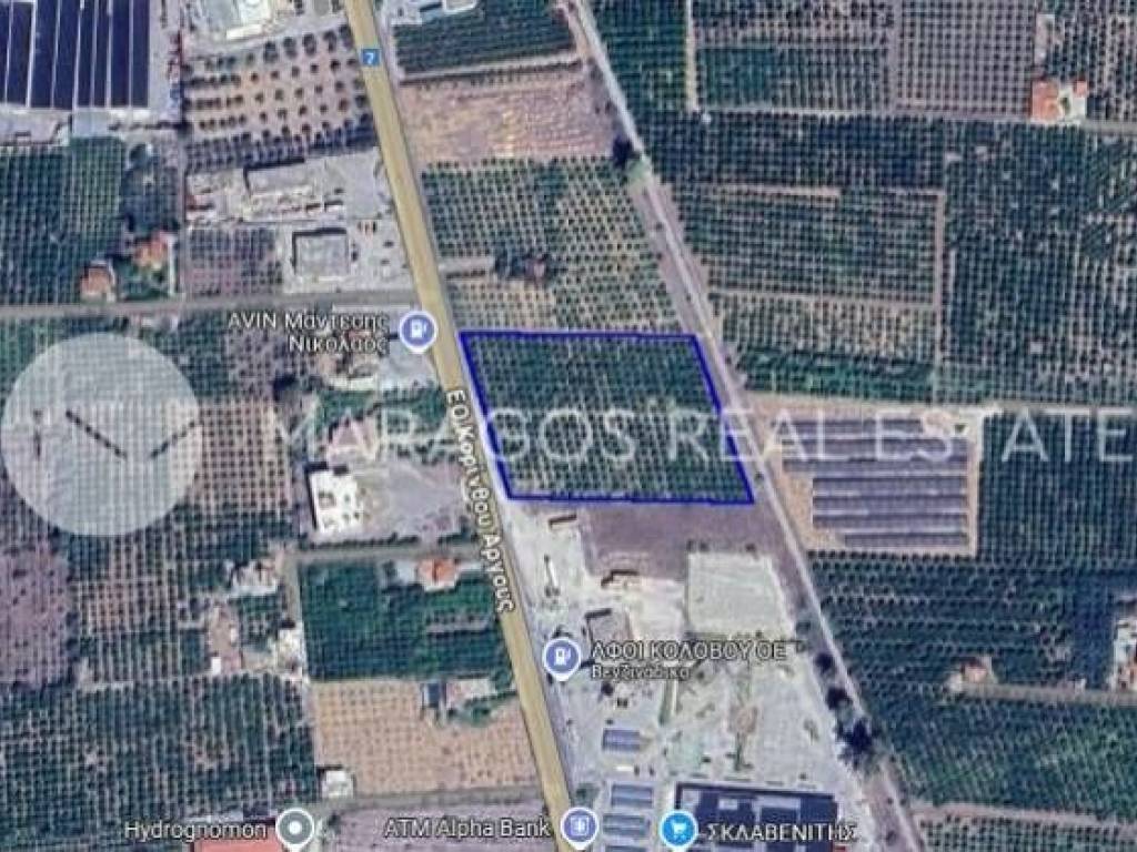 ARGOS, Lot 10.000 sq.m., for investment, ektos schedioy, front facing, distance from sea 8.000 m., with zoning n/a, asfaltos access, level inclination, allowed height 11 m., road width 15 m., plot facade 83 m., plot length 120 m., building factor 0,90, coverage factor 0,40, builds commercial 9.000sq.m., 3 floors, has potential business activity, whole and buildable. Argolida - Argos, a 10,000 sq.m. plot of land is available for sale in a strategic location, ideal for commercial or professional development. It is situated directly on the Argos-Corinth National Road, in an area with high commercial activity and direct access. It is flat and has a frontage of approximately 83 meters on the main road. The property is located within the Zone of Residential Control of Argos (ZOE 3), which allows for a wide range of commercial and professional uses. It is suitable for the establishment of light and medium nuisance industrial or manufacturing units, retail stores, warehouses, office spaces, exhibition centers, food and beverage establishments, sports facilities, fuel stations, or transportation infrastructure. The building coefficient and coverage vary depending on the intended professional use, specifically: · For industrial or manufacturing facilities, the building coefficient is 0.9 and the coverage ratio is 40%, allowing for the construction of up to 9,000 sq.m., with a maximum height of 11 meters and up to three floors. · For retail stores, offices, and other commercial uses, both the building coefficient and coverage ratio are 0.2, permitting the construction of up to 2,000 sq.m., with a maximum height of 9 meters. Its strategic location makes it an ideal choice for businesses seeking high visibility and easy access, suitable for commercial use or as a long-term investment withpotential. The information and characteristics of the properties we present are based on the information provided by the property owners. The locations shown on the map may not be accurate. In order to indicate the property, it is necessary to show your identity card or passport and your PTN.