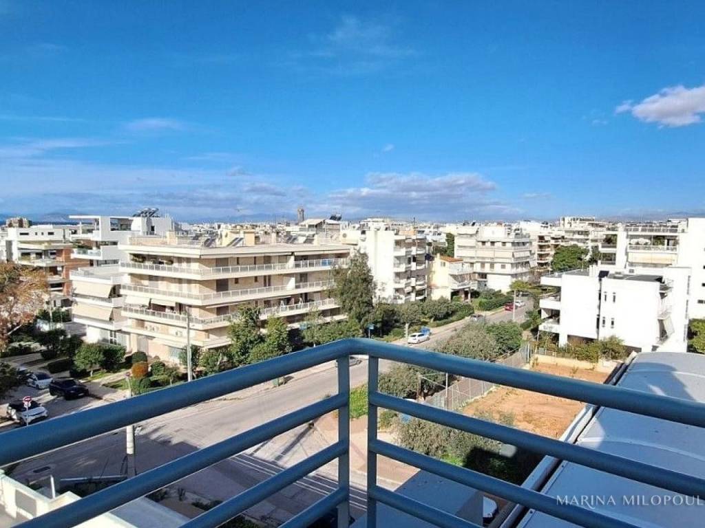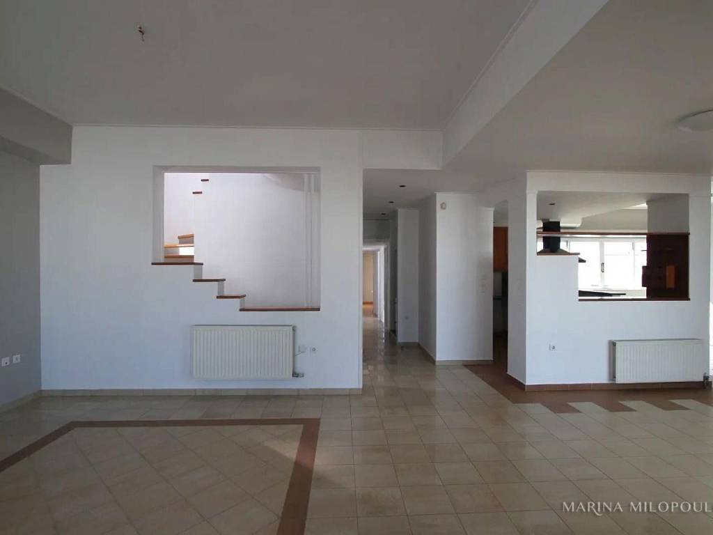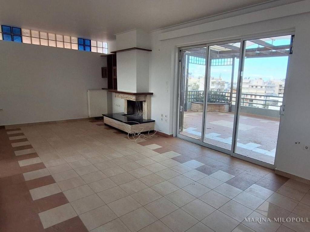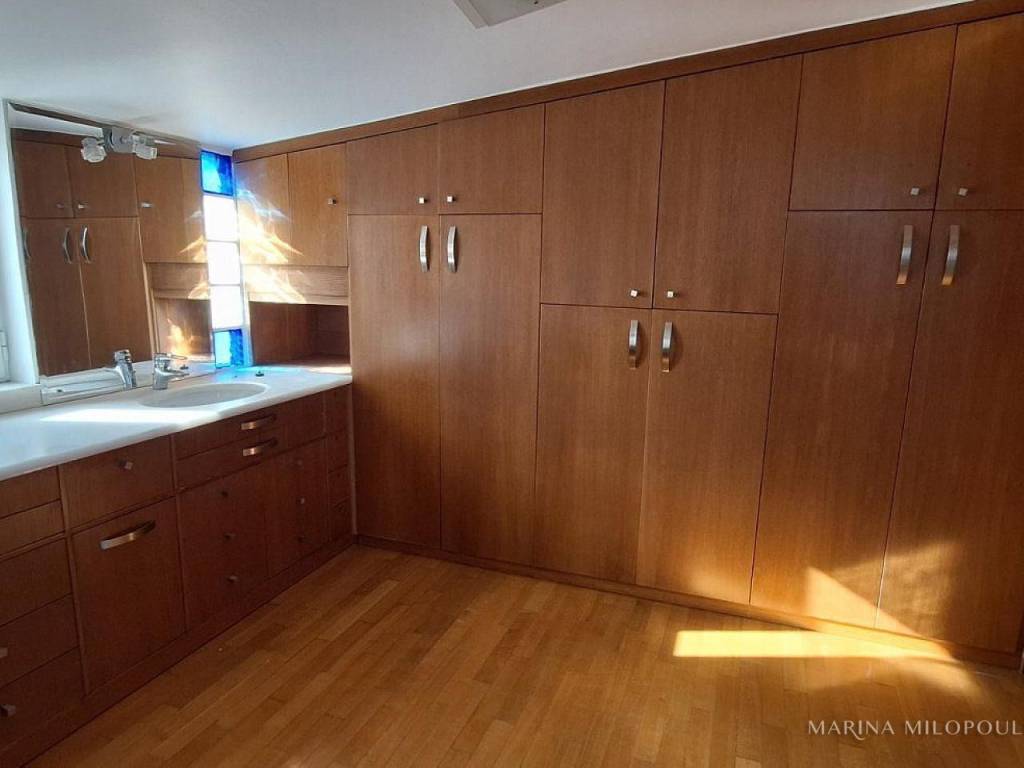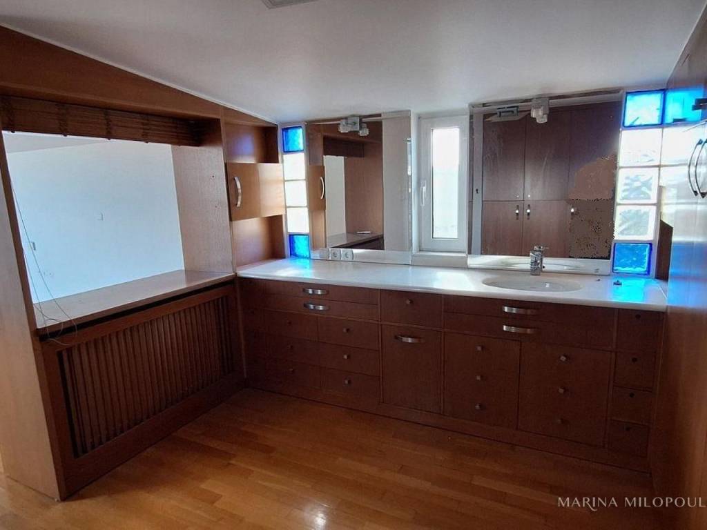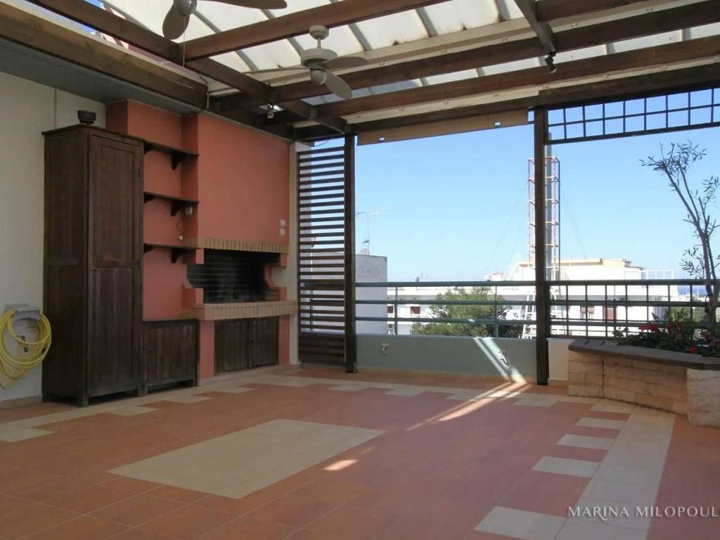 GLYFADA, near the center – a Penthiuse Maisonette on the 4th and 5th floors, 204 sq.m., with large terraces and sea views. - 4th floor, the reception area with fireplace, dining area, semiclosed kitchen, separate casual dining area that can be used as a playroom, 2 bedrooms, 1 bathroom, 1 WC, a bright storage room / laundry, a large front-facing terrace with BBQ, and 2 balconies serving the bedrooms. - 5th floor (attic), a master - ensuite bedroom with ample built-in wardrobes, opening onto a terrace with sea and mountain view. The apartment, where wood is the dominant material, features an internal staircase, security door, alarm system, natural gas heating with three separate autonomous zones for optimal temperature control, A/C units in all areas, oak floors in the bedrooms and tiles in the rest areas, solar water heater, BBQ, night-rate electricity, loft for carpet storage, basement storage room and parking space. Monthly common expenses: €100. Excellent quite residential location, 850 m from Glyfada’s shopping area (10 minutes walk), 1 km from the 5★ One&Only Resort beach, 1.5 km from the public beaches and the marinas and 22 km from the intern.airport