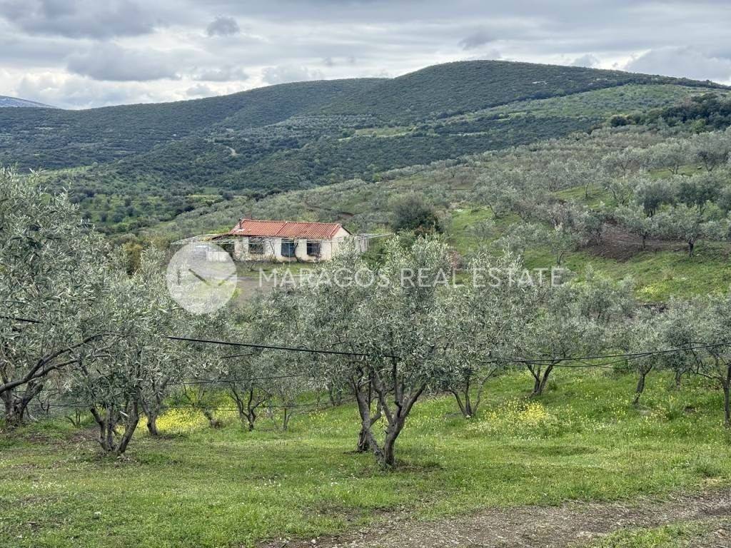 ELLINIKO, Lot 90 sq.m. in 58.000 sq.m. plot, ground floor, for investment, ektos schedioy, for agricultural use, with view boyno, 1 b/r, living room, fireplace, bathroom, kitchen, front facing, bright, corner, heating aytonomi thermansi sompa, with floor type plakaki, with aloyminioy joinery, garden, without common expenses, distance from sea 15.000 m., 3 storage rooms 65 sq.m., 3 open garages, with zoning n/a, chomatodromos access, amphitheatrical inclination, out of city boundaries, plot facade 150 m., whole and buildable, drill. In the wider area of Argolis, near the town of Elliniko, a plot of land of a total area of 58,000 sq.m. is for sale. It is planted with 1,070 olive trees that produce edible olives, achieving an annual yield of approximately 40 kilos per tree, ensuring high productivity. On the property, there is a 90 sq.m. single-family house, which includes one bedroom, a living room with a fireplace, a kitchen, a bathroom, and three storage rooms with a total area of 65 sq.m. Additionally, there is a private well, a 4,000 cubic meter water tank with a pump that operates directly via solar panels. a new irrigation network and a power generator.The plot has an amphitheatrical slope and offers unobstructed views of the mountainous landscape. The information and characteristics of the properties we present are based on the information provided by the property owners. The locations shown on the map may not be accurate. In order to indicate the property, it is necessary to show your identity card or passport and your PTN.