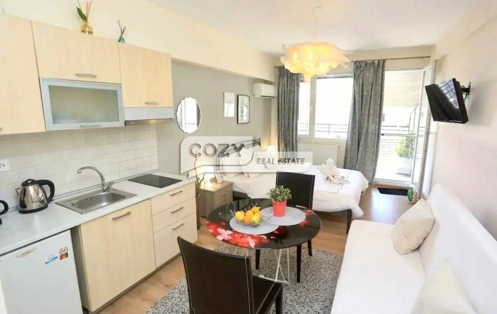 Thessaloniki, Center: For rent in a very central location, fully renovated Studio 27sq.m. front, bright, on the 8th floor with elevator. It consists of 1 room, 1 living room and kitchen. It is fully furnished, with electrical appliances, painted and has synthetic double glazed windows, security door, solar water heater. It is ideal for students or employees. Price 460 € | Property Code: # 724681 cozy