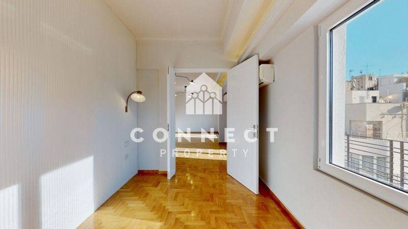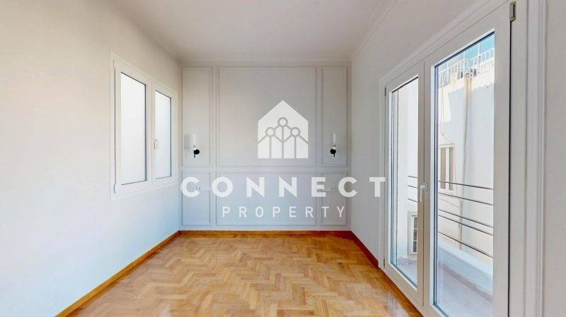 An exceptional, fully renovated through-apartment of 84 sq.m. is available for rent on the 6th floor of a well-maintained building, located on one of Kolonaki’s most prestigious streets, Voukourestiou Street.