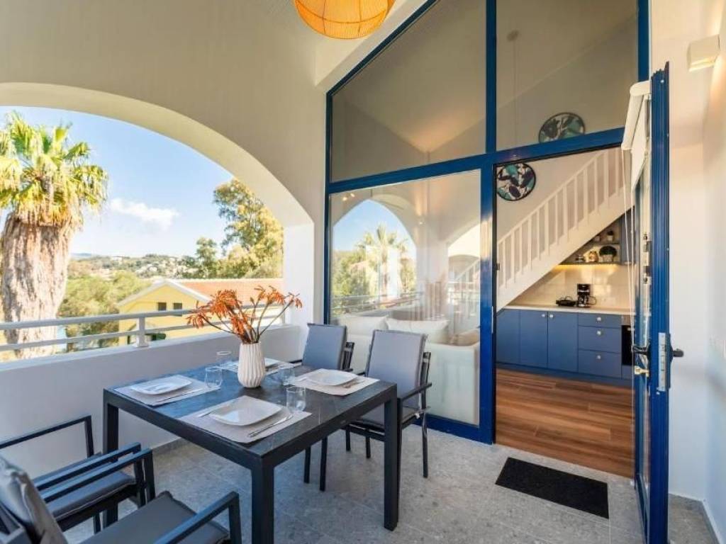 For Sale: Apartment in Gouvia, Corfu This fully renovated 56.78 sq.m. first floor apartment with mezzanine is located in a beautiful resort complex in Gouvia, just minutes away from the International Marina. Combining comfort, prime location, and excellent facilities, it offers both a wonderful holiday home and an ideal rental investment. Layout & Features 56.78 sq.m. total living space Ground floor: open plan living room, dining area, fully fitted kitchen One bedroom and modern bathroom with shower on main level Mezzanine level with additional bedroom via wooden staircase Large private veranda for outdoor relaxation Recently renovated, in brand-new condition Location Situated less than 5 minutes from Gouvia Marina, the apartment is close to all shops, restaurants, and amenities. Corfu Town and the airport are just a 15-minute drive away, making it a perfect base for holidays or year-round living. Highlights Set within beautiful landscaped gardens Large shared pool with children’s pool and Poolside café/bar Tennis court On-site reception and security Ample parking spaces Fully furnished and equipped Excellent holiday rental potential with resort management services