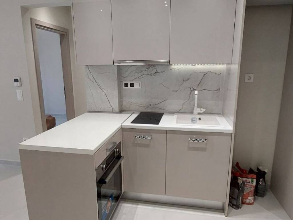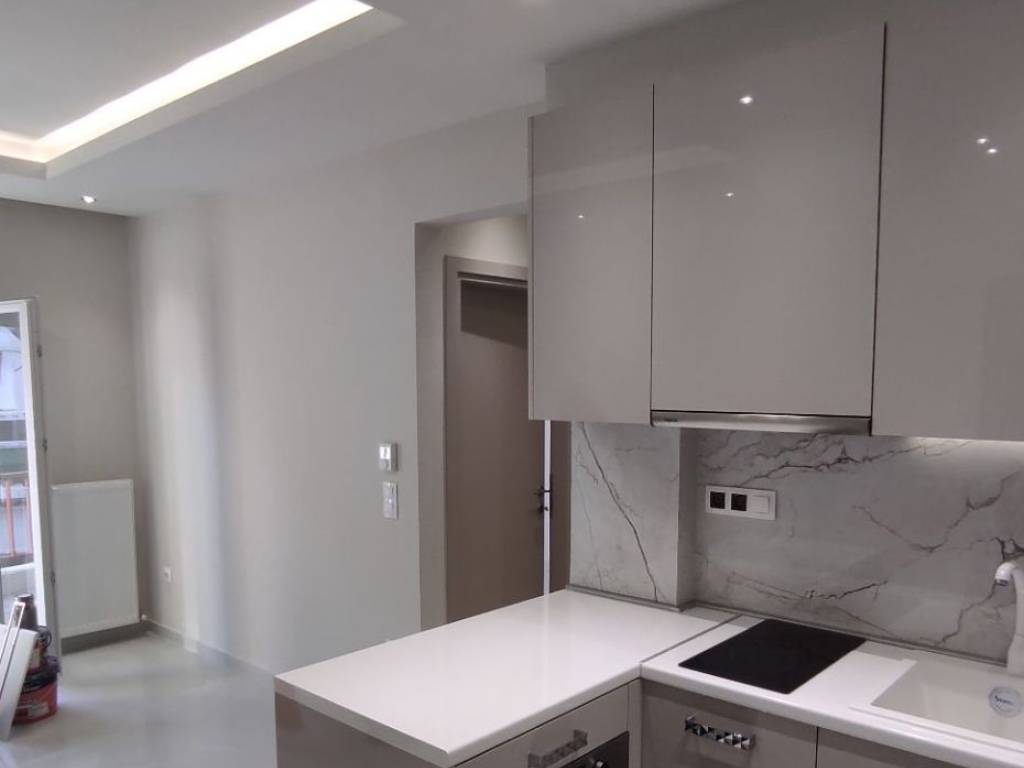 For sale is a fully renovated, ultra-luxury, front-facing apartment located on the 3rd floor of a particularly well-maintained and cared-for building with elevator access. The property features an excellent layout and consists of two spacious bedrooms, an open-plan living room and kitchen, a bathroom, and a large balcony offering abundant natural light. The apartment is equipped with two very large wardrobes, a built-in oven, ceramic cooktop, and extractor hood. It features double-glazed, energy-efficient synthetic window frames with pleated insect screens, a reinforced security door, concealed lighting, spotlights, and elegant decorative gypsum board constructions. The high construction standards and refined finishes create a strong sense of luxury and modern design. Heating is autonomous via natural gas with an Immergas condensing boiler, ensuring comfort and energy efficiency. The building was constructed in 1974 and is located next to a major central road, providing immediate access to all local amenities and a large number of public transportation stops. This property is an ideal choice for both owner-occupation and investment purposes.