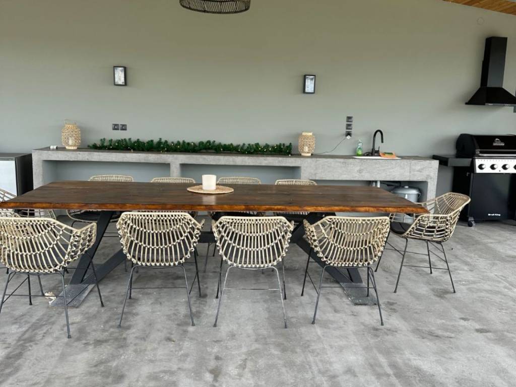 Ancient Olympia , Luxury Detached Residence of 300 sq.m. on a 20,000 sq.m. Estate This exceptional detached residence spans 300 sq.m. and is set on an impressive 20,000 sq.m. private estate. The property is arranged over two levels. The ground floor offers an elegant living and sitting area with a fireplace, a formal dining area, a fully equipped kitchen, a playroom, and a guest WC. The first floor comprises two spacious en-suite bedrooms with private bathrooms, one additional bedroom, one children’s bedroom, and an additional full bathroom. The beautifully landscaped outdoor areas include a 70 sq.m. enclosed barbecue pavilion, three covered parking spaces, a separate lounge area with a built-in table, an outdoor dining area with a traditional wood-fired oven, a private basketball court, and a children’s playground. A valid permit is in place for the construction of a 90 sq.m. swimming pool. The estate is enriched with approximately 150 olive trees and a variety of fruit trees, offering a serene natural setting. The entire property is fully equipped with fire protection infrastructure, as well as an advanced security and surveillance system. The villa is 3km away from Ancient Olympia, 15km from beach and near existing hospital , airport and port .